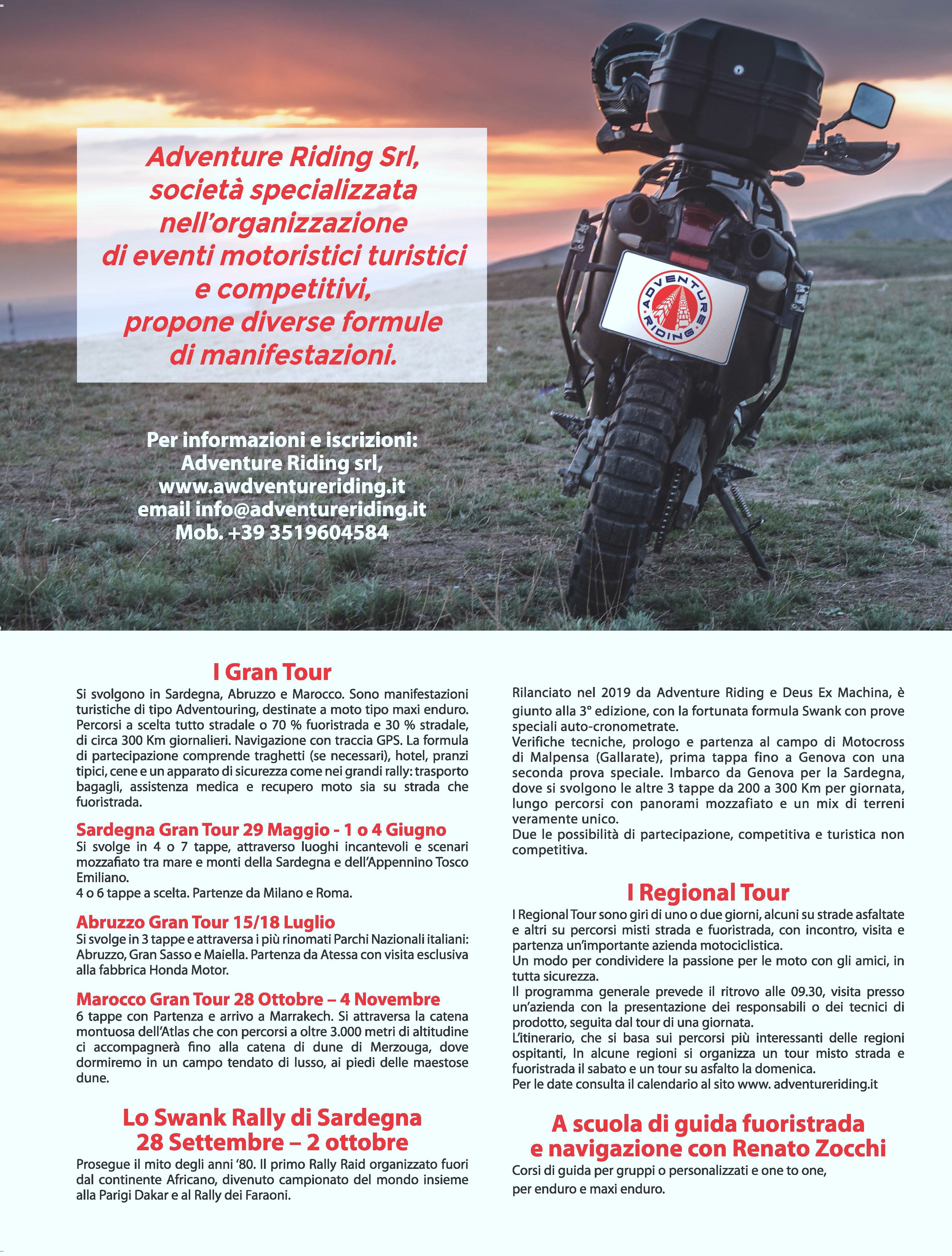 Adventure Riding Eventi 2021 Pubblicato daLuca-Kerosene13 aprile 20218 aprile 2021Pubblicato in: Comunicati Stampa, EventiTag:abruzzo, adventuring moto, marocco, renato zocchi, sardegna Anche per il 2021 Adventure Riding propone une serie di eventi Adventuring in location top , Sardegna, Abruzzo e Marocco Condividi: Fai clic per condividere su X (Si apre in una nuova finestra) X Fai clic per condividere su Facebook (Si apre in una nuova finestra) Facebook Mi piace Caricamento... Correlati