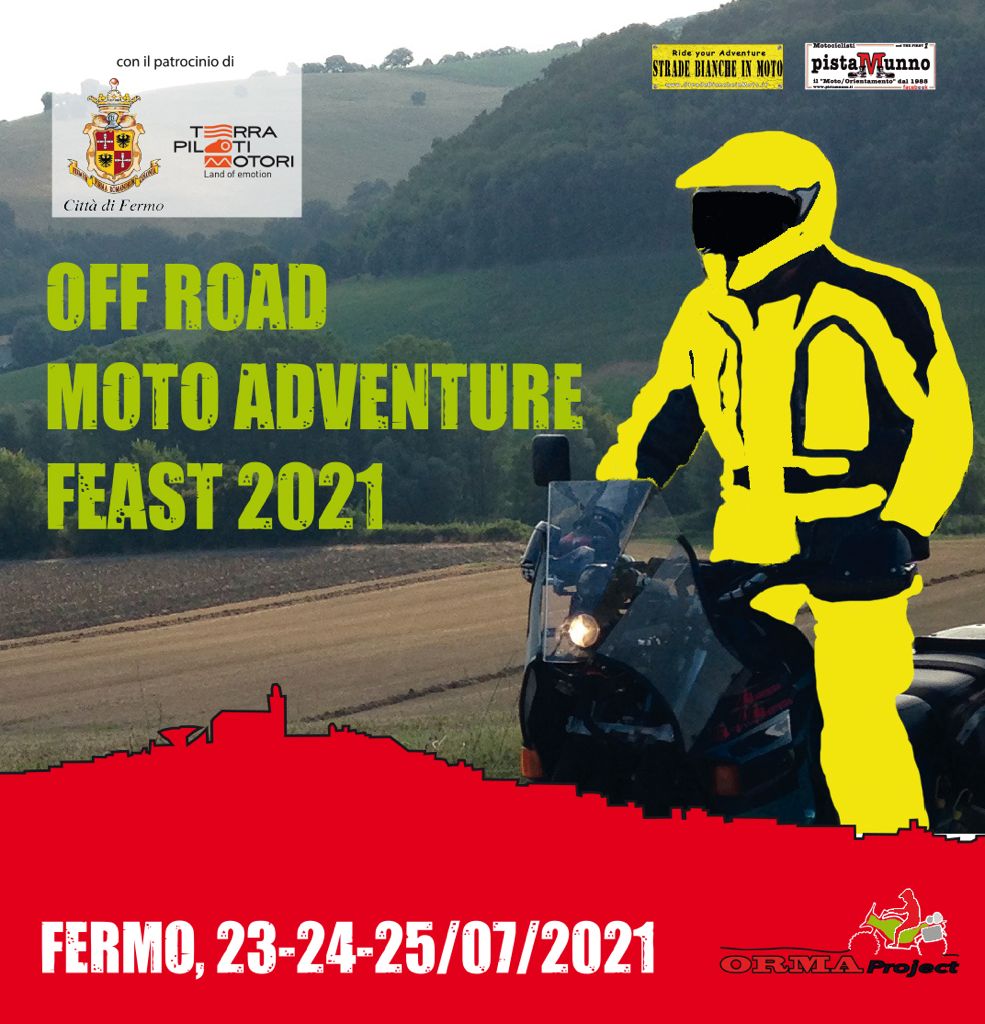 ORMA Feast, anche quest’anno è patrocinato dal Comune di Fermo, che ringraziamo per l’importante collaborazione e presenza, e dall’Associazione Terre di Piloti e Motori. Off Road Moto Adventure Feast è un evento del Moto Club “Strade Bianche in Moto ASD”, realizzato in collaborazione con il Gruppo “PistaMunno” di Fermo.