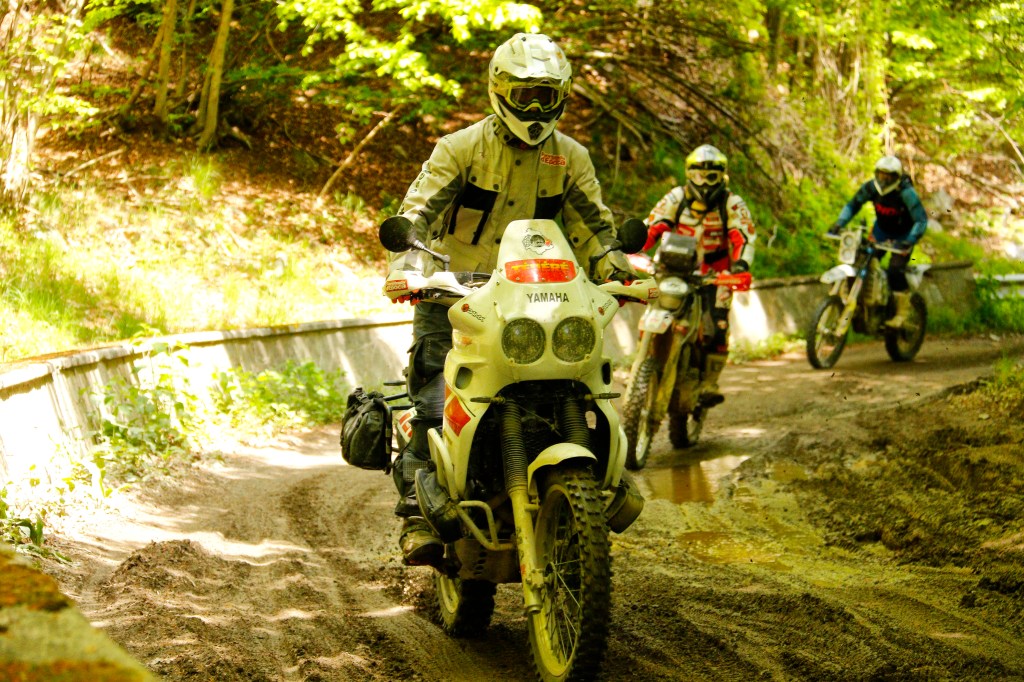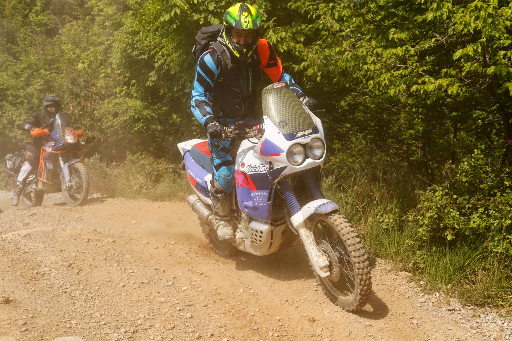 Il viaggio prosegue il passo è buono nessun problema alle nostre vecchiette d’epoca Yamaha Tenere 600 , 750, TT 600 ed inevitabilmente anche per le nuove T700 Yamaha e Africa Twin, i primi 130 km scorrono veloci si alternano tratti di strade bianche con altrettanto belli e scorrevoli asfalti che ci portano velocemente fino alla prima sosta a Piani di Praglia per il panino in piedi causa ancora le restrizioni covid.