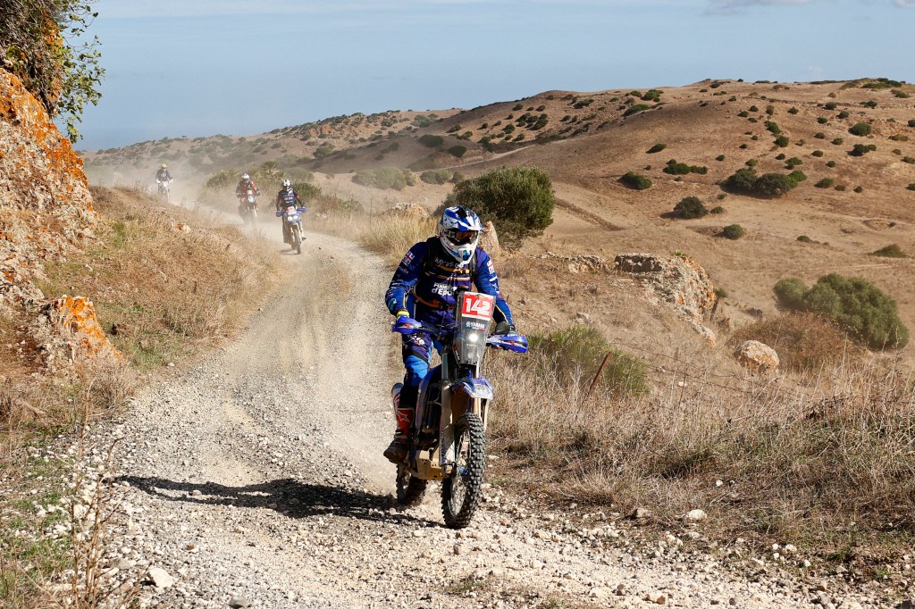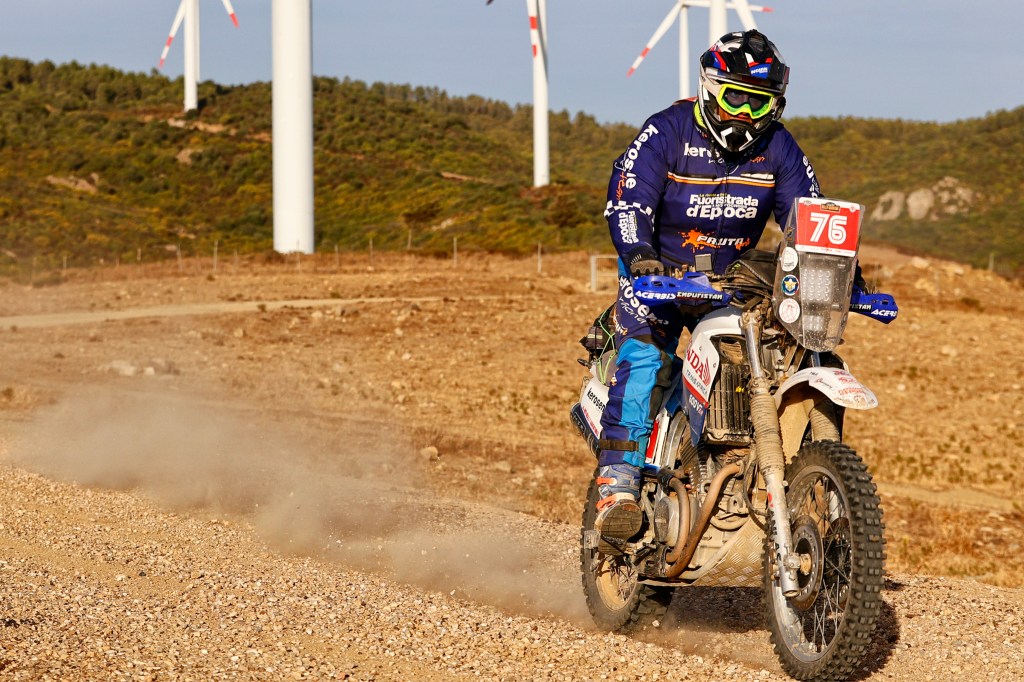 Ultima tappa in terra sarda per il rientro a Porto Torres, tappa lunga oltre 300 da farsi assolutamente entro le 18.30 per potersi imbarcare in tempo utile, i primi in classifica nelle categorie R1 e R2 si affrettano alla partenza anche perché dopo un centinaio di km di trasferimento ad attenderli è la fatidica e faticosa prova speciale su sabbia ad Arenas nelle vicinanze della famosa pista di motocross di Riola Sardo area d’allenamento di molti piloti professionisti.