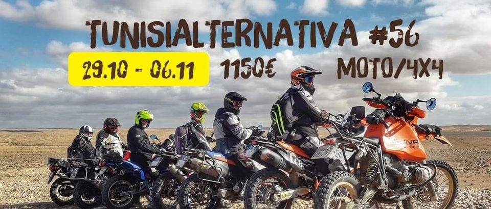 - veicolo 4×4 per trasporto bagagli (ciò è riferito ovviamente ai motociclisti) nei giorni nei quali si fanno percorsi offroad (in pratica da Matmata a Kairouan, esclusi quindi i trasferimenti) NEL CASO CI SIANO ALMENO 8 MOTO ISCRITTE