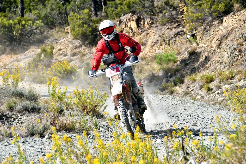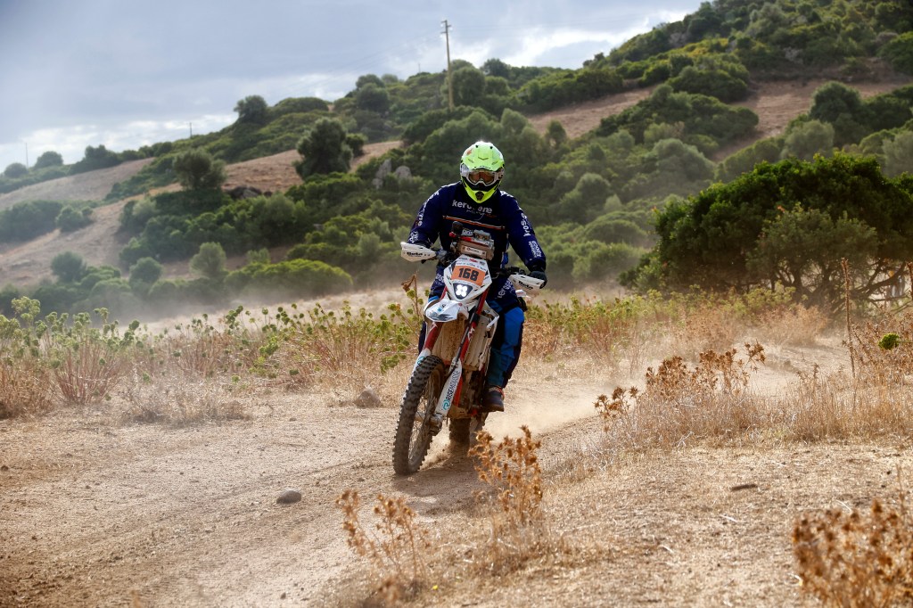 I paesaggi ed i tracciati stretti e tortuosi che ci lasciamo alle spalle dai canneti ai boschi di sughero, tratti asfaltati su strade secondari e tratti di ancora vero enduro lasciano poi spazio ai veloci sterrati sotto le pale eoliche di cui è disseminata l’isola e si può scatenare tutta la cavalleria prima della prova speciale anche questa volta molto guidata e a cui fare attenzione per non pascolare alla ricerca della traccia giusta con inevitabili perdite di tempo e posizioni in classifica.