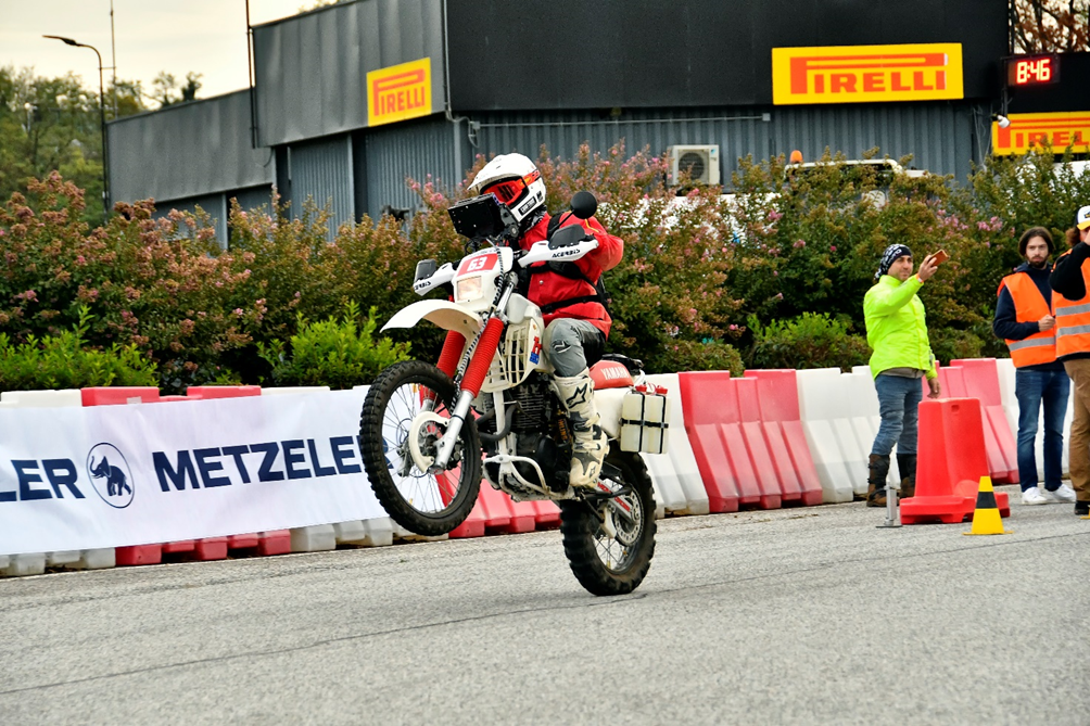 Si entra nel vivo e la quinta edizione prevede due prove speciali, una come sempre in prossimità dell’arrivo di tappa ed una subito dopo la partenza, infatti la pista Pirelli di Vizzola Ticino ha ospitato la prova di accelerazione, tipica delle gare di regolarità d’epoca e meno scontata per i bicilindrici e maxi-enduro presenti.