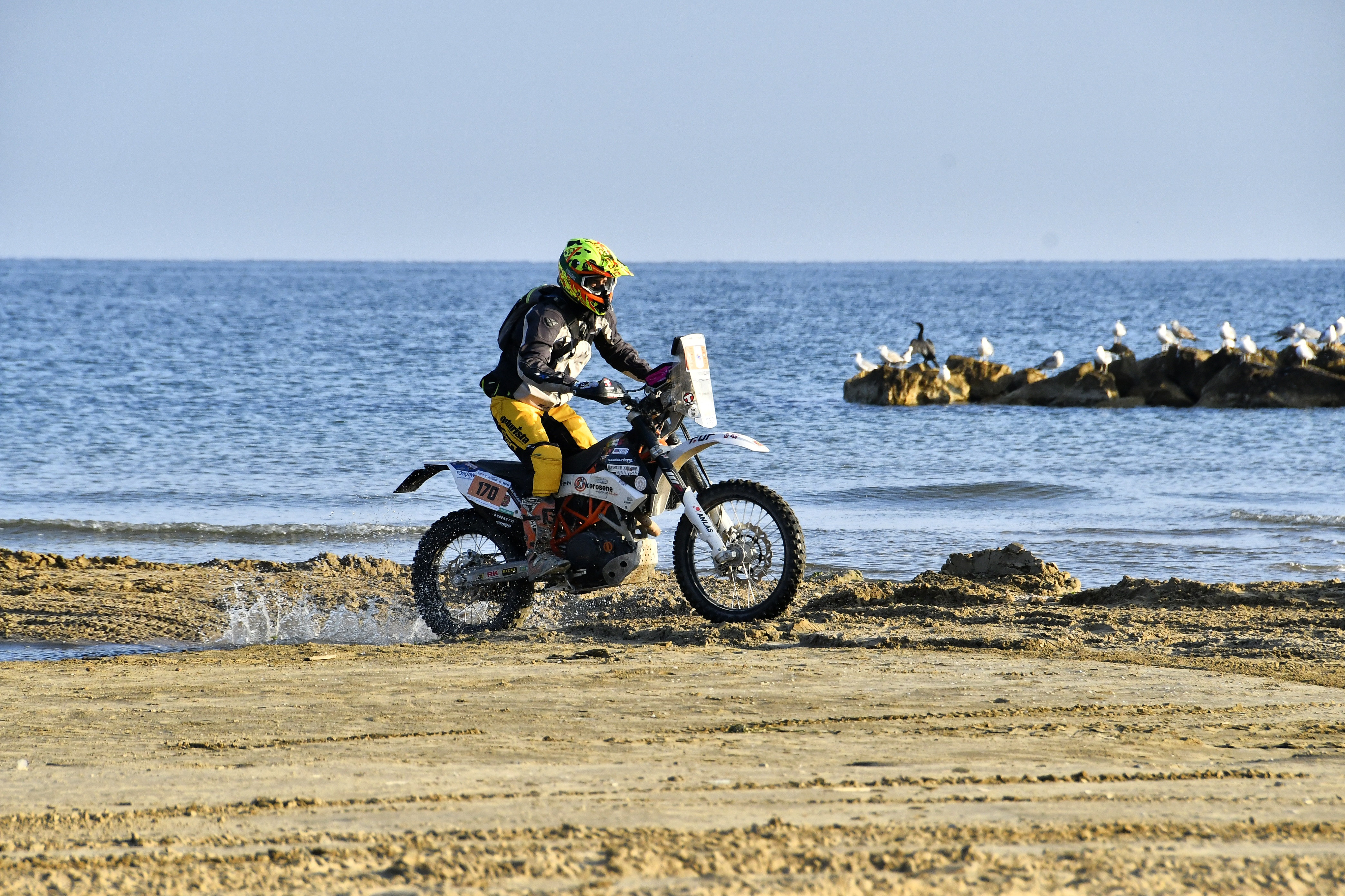 Un breve briefing con le principali note della giornata è il preludio alla partenza che non tarda ad arrivare. Con un colpo di gas ci immettiamo sulla traccia che poche centinaia di metri dopo devia nella tanto bramata spiaggia, una distesa di cinque chilometri lineari, con una sabbia compatta che aggrappa i tasselli per un’ottima trazione. Ci si trova tuttavia davanti ad un paradosso bizzarro che