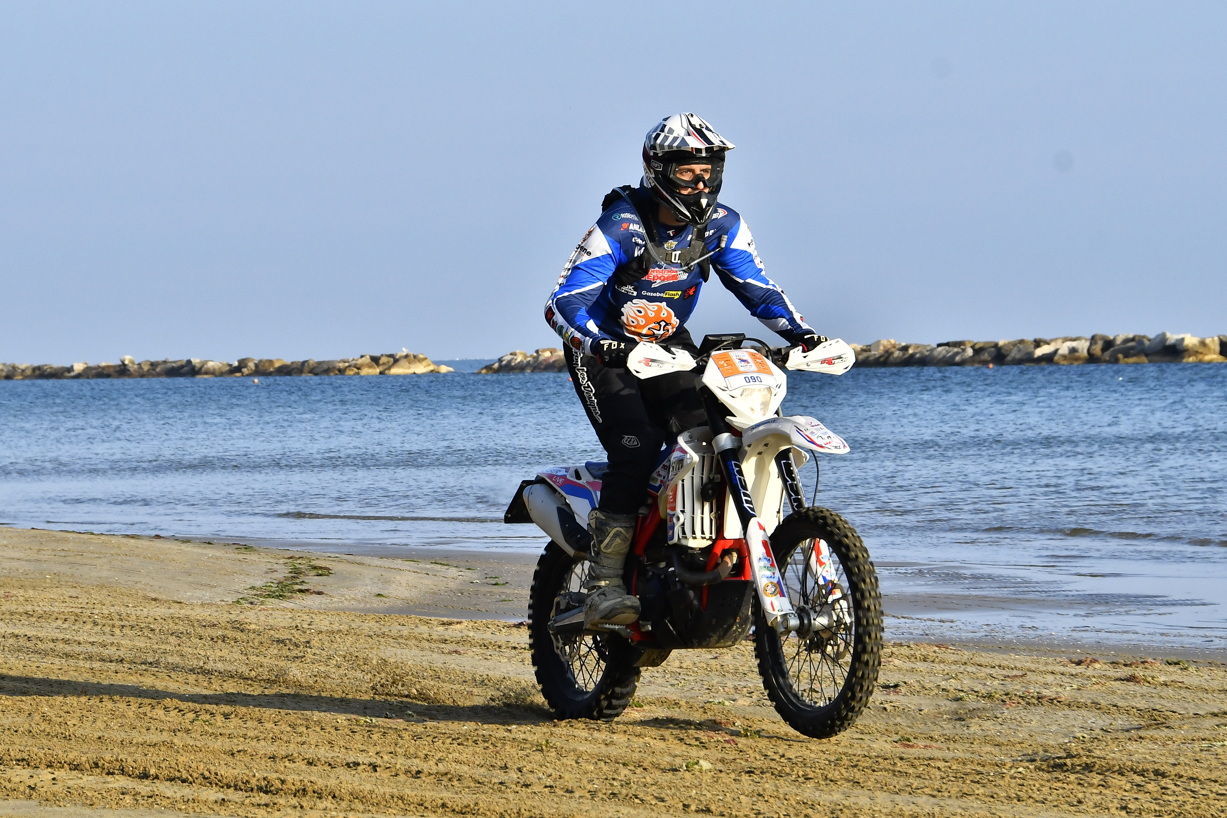 E non è finita perché Tamburini ha iniziato alla grande grazie al patrocinio dell’assessorato del Comune di Pesaro e Regione Marche, i primi chilometri si sono sviluppati sulla spiaggia che da Pesaro si allunga sino a Fano, un’opportunità unica per posare i tasselli su una spiaggia pubblica e darci del gran gas!!! stile ultima tappa della Dakar.