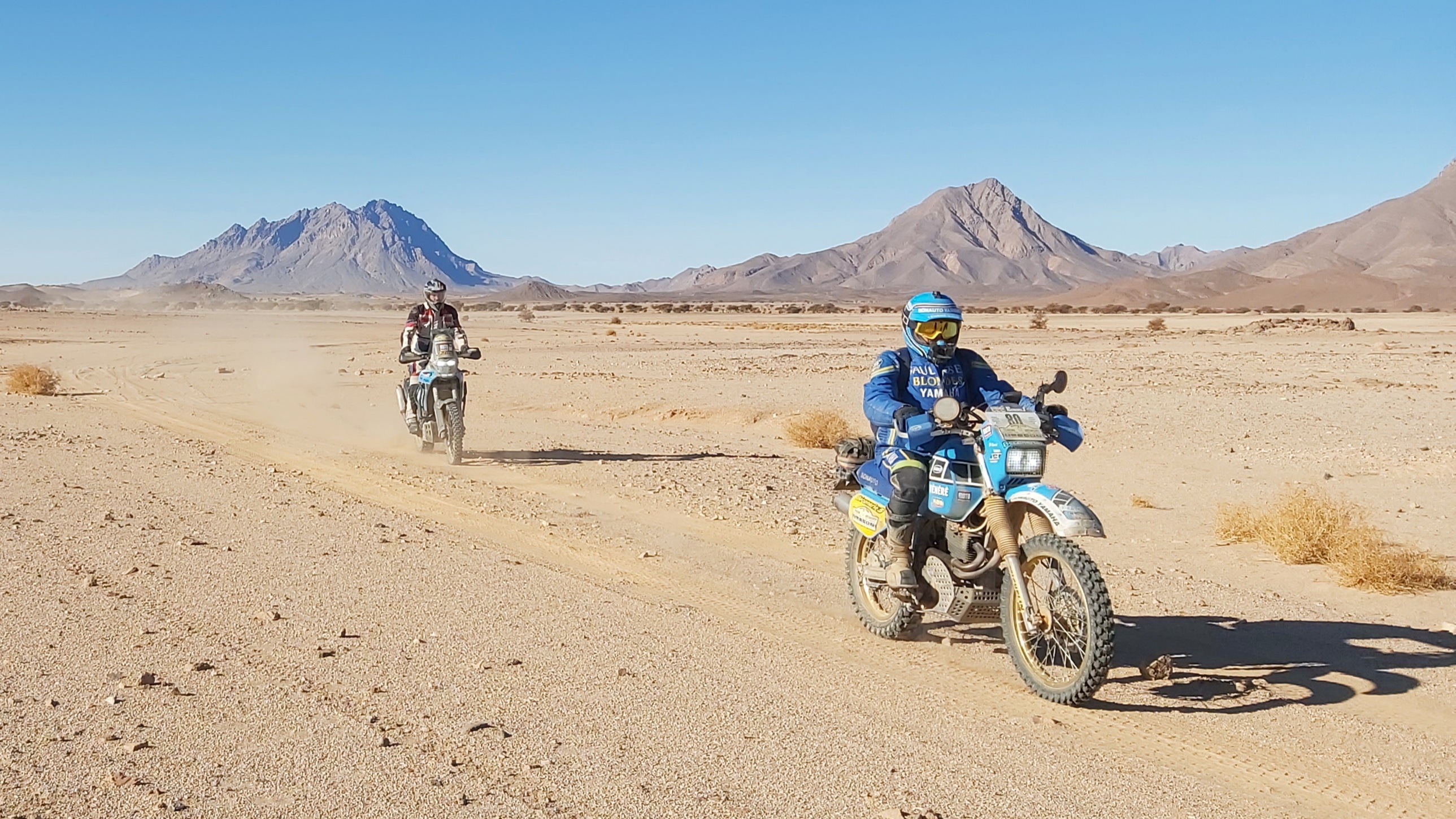 La fine della prima giornata ci ha fatto intravedere cosa ci aspetta nei giorni a venire con un concentrato di sabbia e rocce per raggiungere un sublime bivacco. Eravamo lontani dall’immaginare che fosse solo una goccia nell’oceano…perché, oggi, abbiamo percorso 200 km di piste sublimi in paesaggi sublimi. Quindi non tutto è stato facile perché il terreno è molto impegnativo, ma tutti hanno potuto provare il piacere e misurare l’impresa rappresentata dalle vere edizioni della Dakar di una volta con tappe da 3 a 4 volte più lunghe senza GPS.