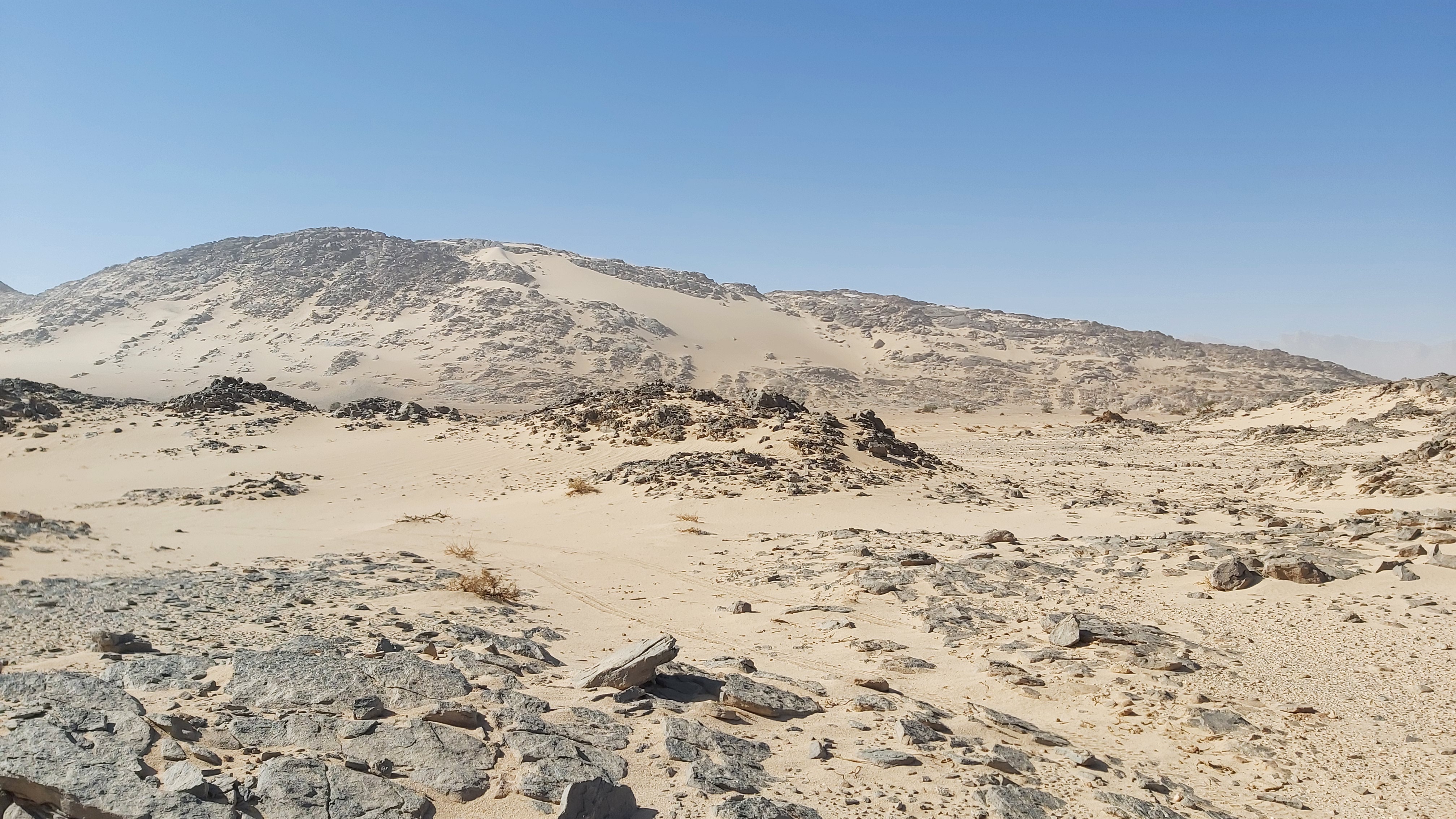 Un formidabile labirinto di nere rocce vulcaniche erette o adagiate in un oceano di sabbia bionda sotto un cielo azzurro del Ténéré. Una meraviglia !
