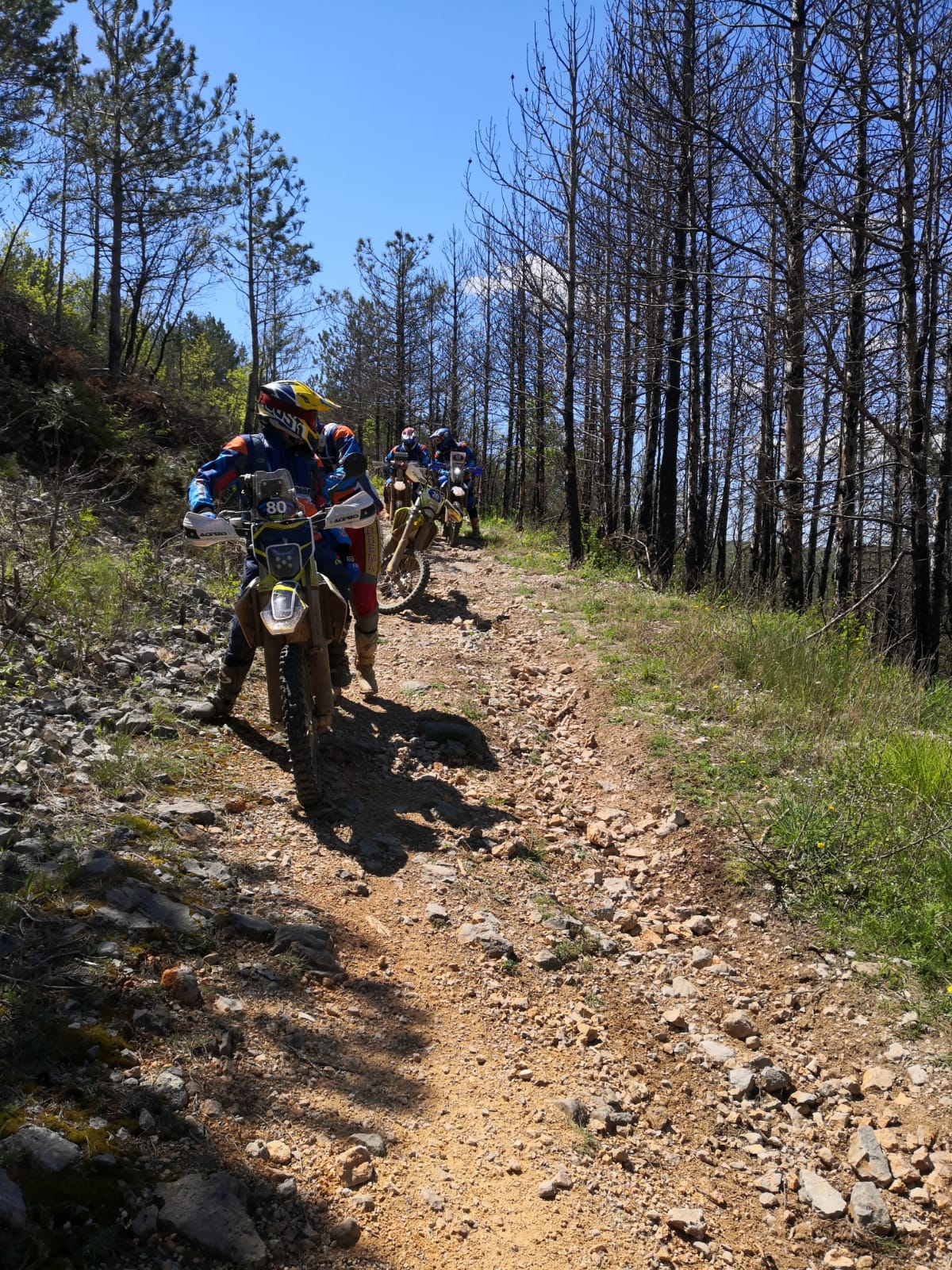 Day 1 raid -Da parte nostra il day 1 del raid parte quasi subito dopo 20 km con una prova speciale hard la più tosta che ci ha segato il fiato e le gambe per la difficoltà ed i tappi, dopo una lunga attesa finalmente si rivede l’asfalto e passiamo, come molti altri alla traccia easy verde e con solo tratti hard M = medium perché gli H= hard sono davvero hard enduro i sentieri delle capre a dir poco.