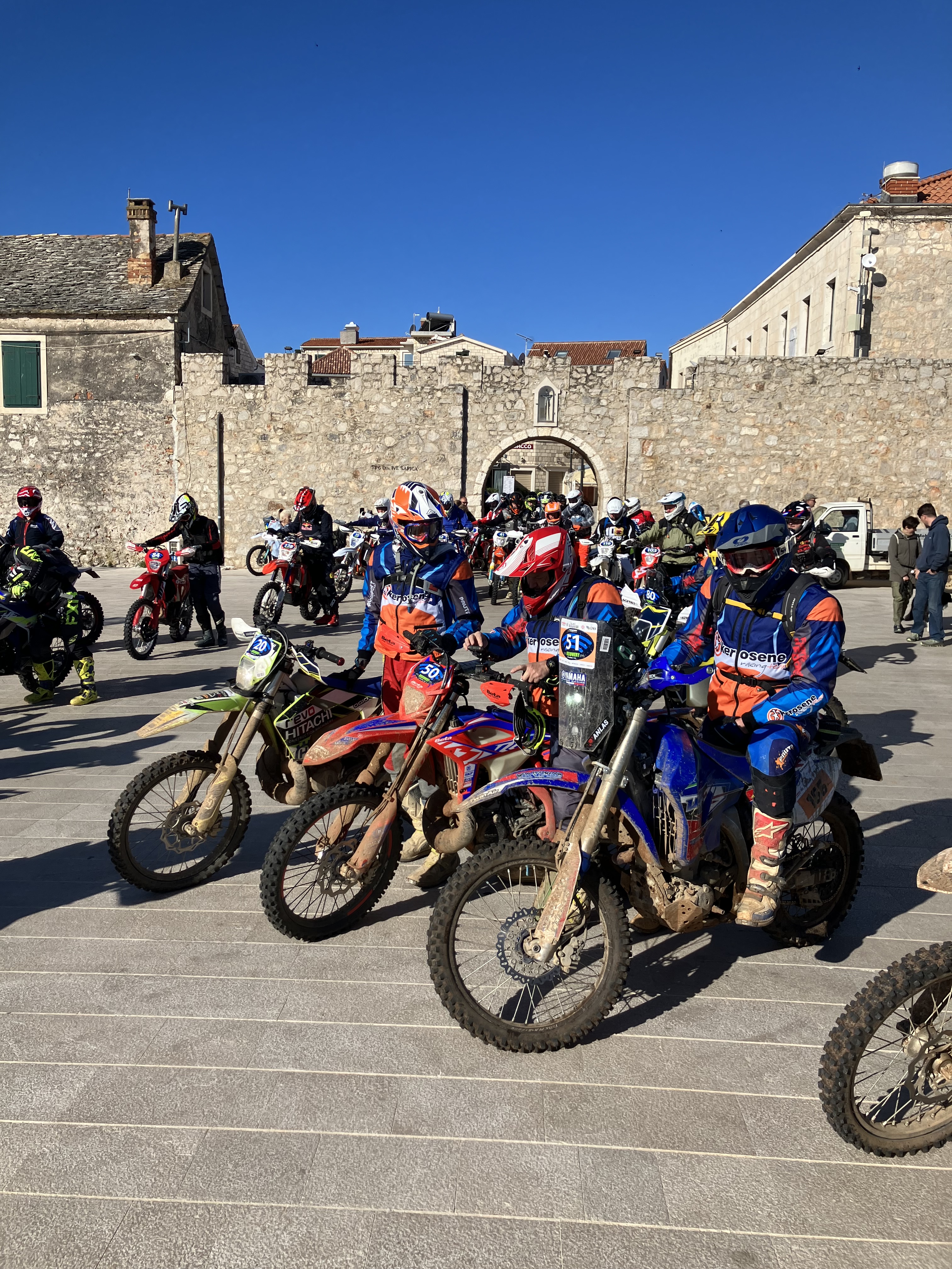 Il numero di gara non è vincolante per l’orario di partenza, come avviene nelle normali gare enduro, la differenza la fa l’allineamento alla mattina al via che avviene alle 8 ma i piloti più esperti e già sgamati dalle precedenti edizioni si allineano nella piazzetta di Primosten già dalle 6 del mattino per gestire al meglio la gara in base al meteo, al terreno ed al rischio di tappi e per verificare anche la presenza o meno di altri top driver in lotta per la classifica.
