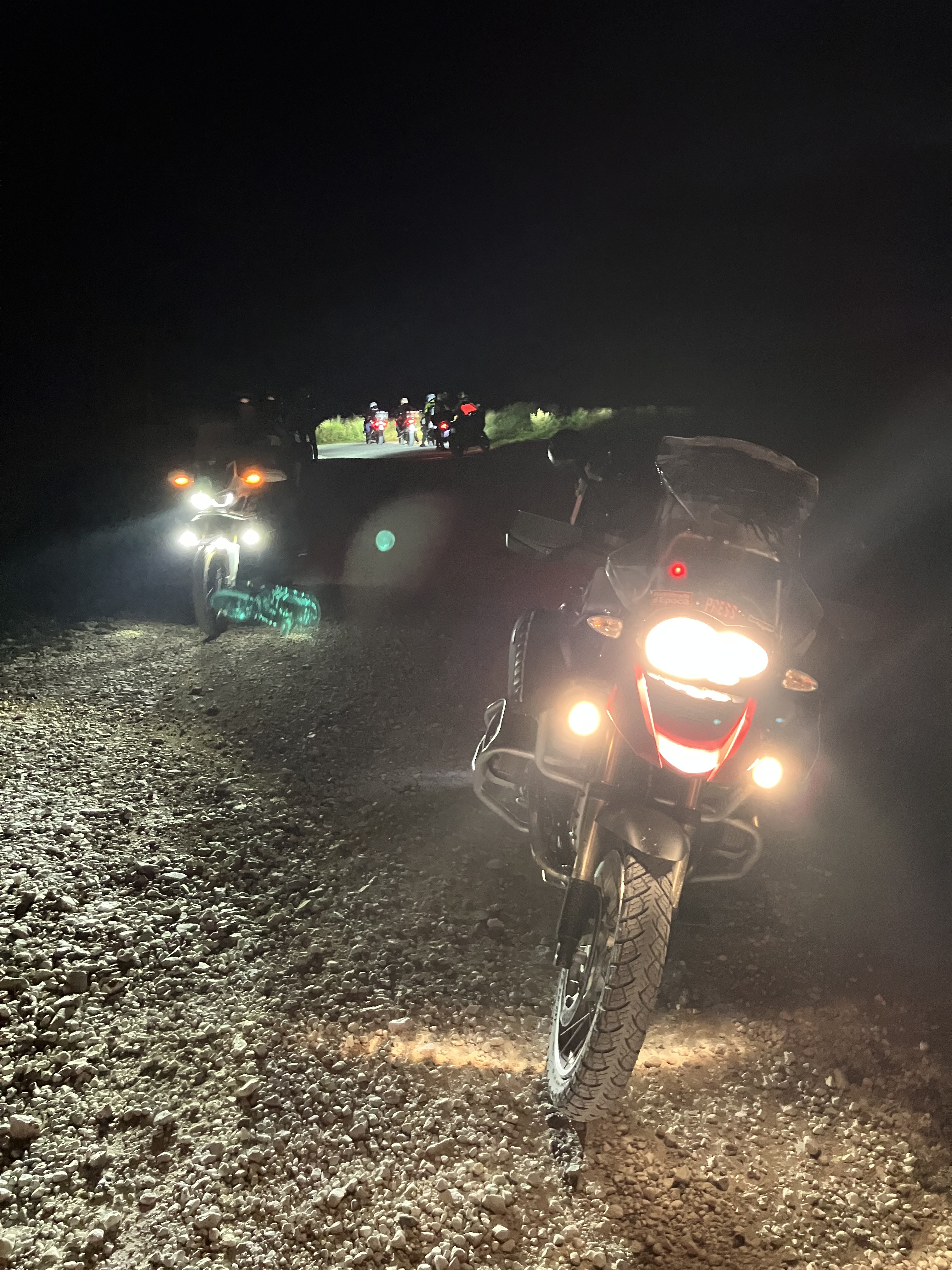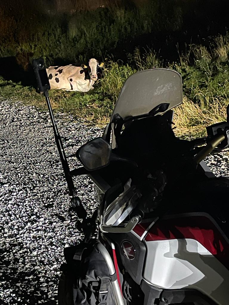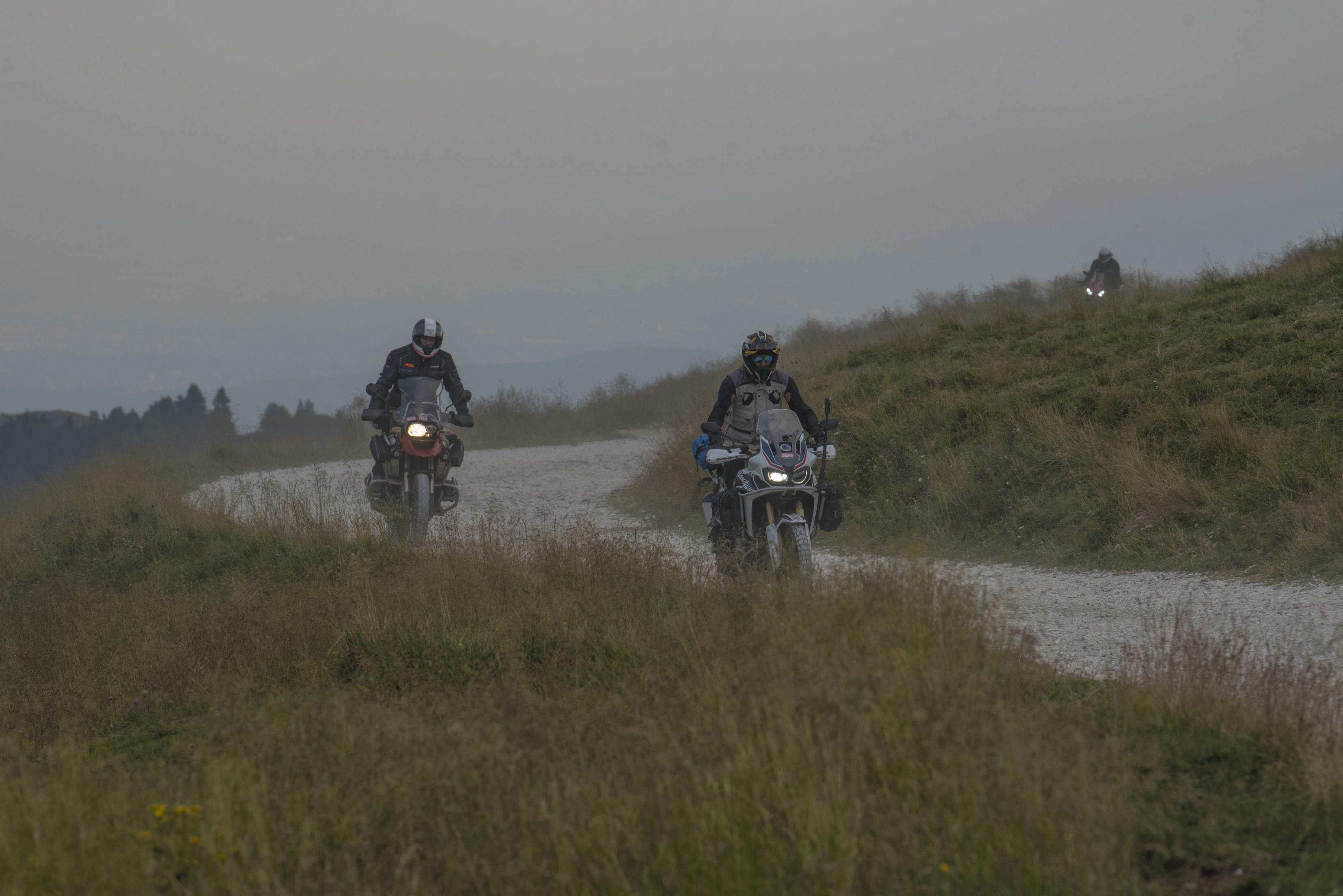 E poi arriva la notte, inizia lo sterrato illuminato dai fari delle moto, siamo in quota ci accompagnano per i 70 km del rientro solo le mucche al pascolo. La stanchezza incomincia a farsi sentire, maggiormente per noi che abbiamo sulle spalle, oltre a due piatti di gnocchi, anche una lunga giornata di passi alpini.