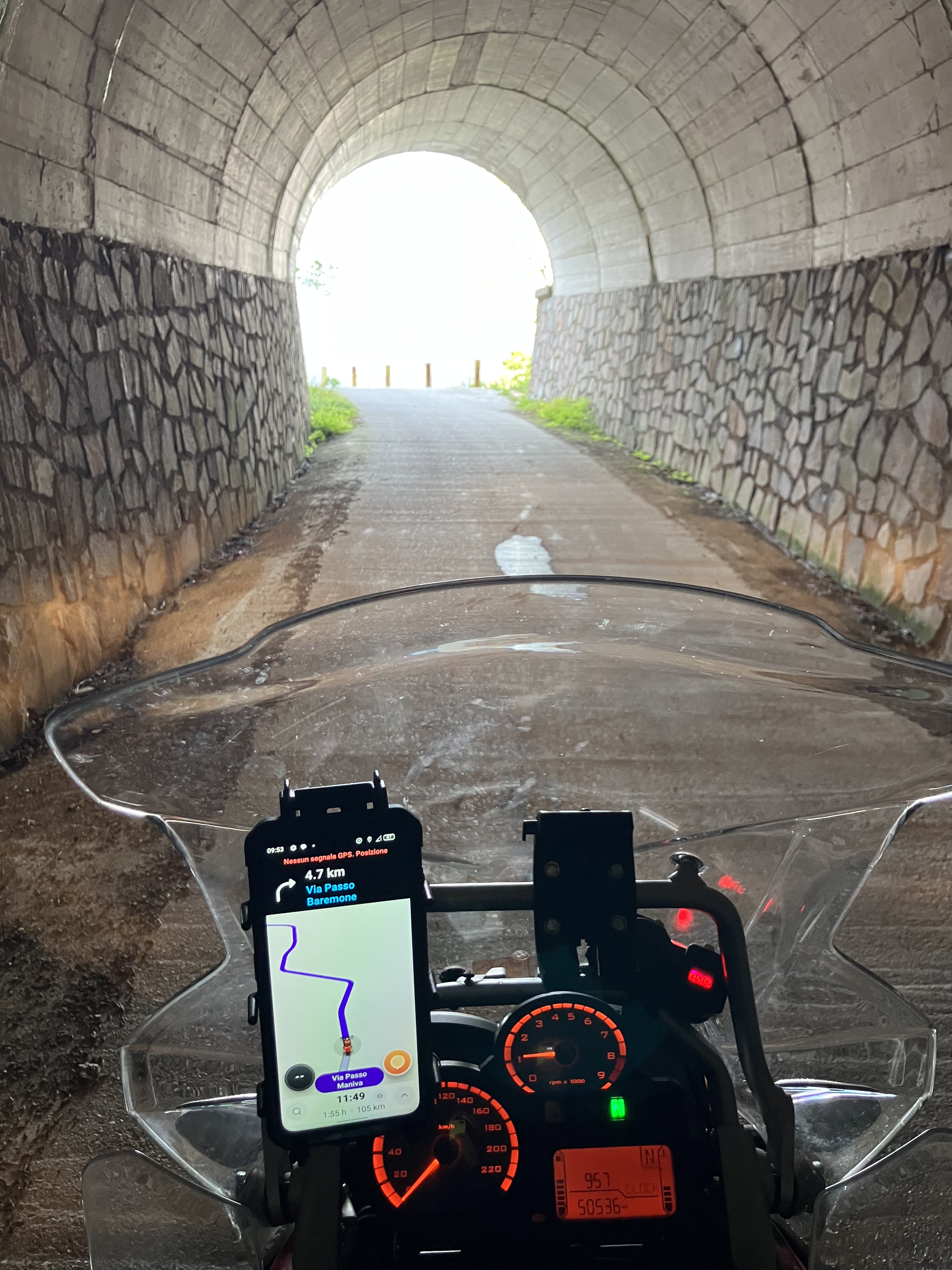 Il fresco lo apprezziamo quasi subito, fin troppo, complici le nuvole basse gran parte del panorama lo abbiamo potuto solo immaginare ma in compenso le bellissime strade e l’assenza di auto o altre moto ha reso la salita davvero spettacolare. Uno scarabocchio di tramonto appena accennato conclude la prima mezza giornata di avvicinamento a Verona.