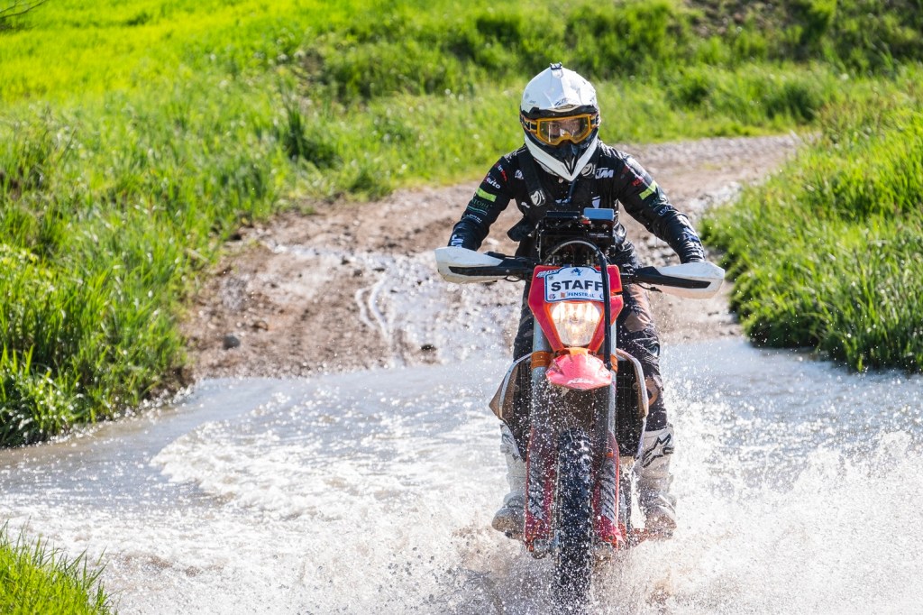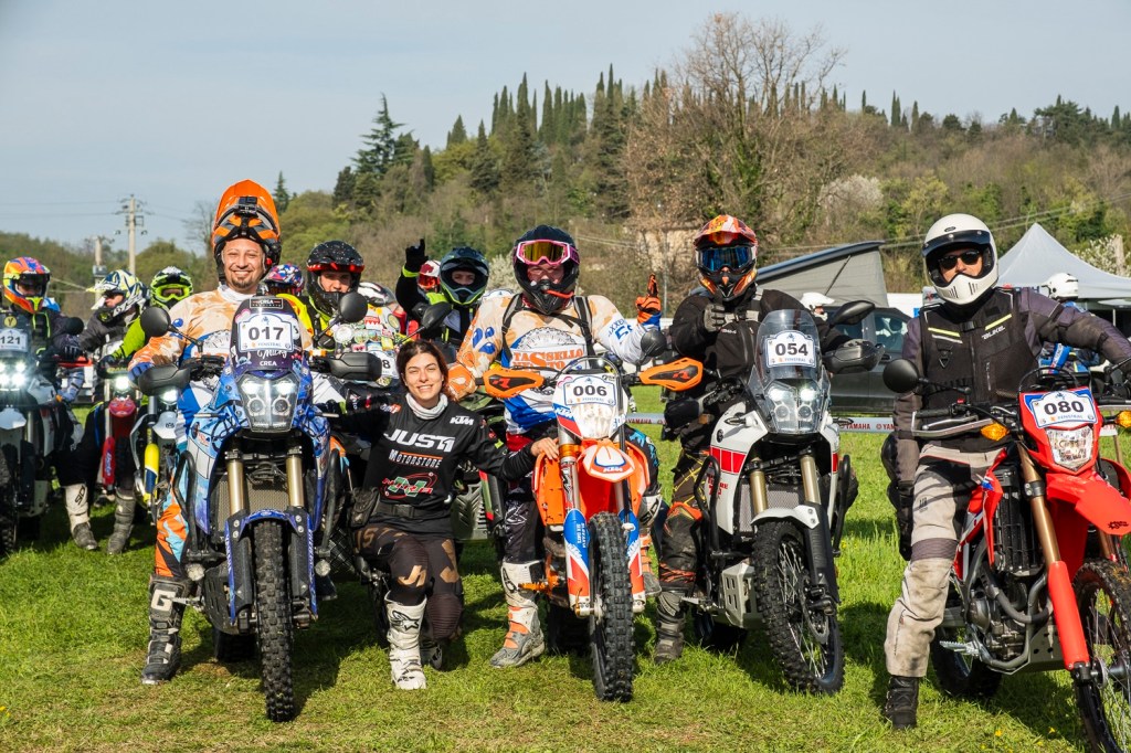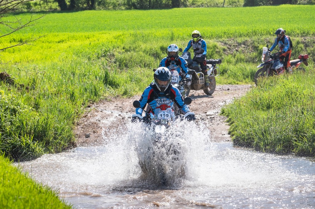 Arriviamo a Sabato mattina. Preparo qualche moka di caffè per i ragazzi nelle tende. Dormendo io stessa nel furgone li avevo come “vicini di casa” e abbiamo creato un paddock di risate e racconti. Alle ore 8:15 un veloce briefing sotto l’arco partenza da parte di Niccolò Pietribiasi e Marcello Salandin e via con partenza a tre piloti al minuto per percorrere circa 170 km di giornata.