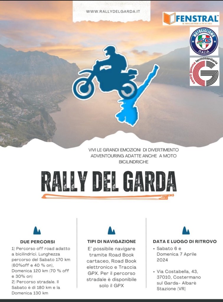 Nel weekend del 6 e 7 Aprile si è svolto il Rally del Garda, evento mototuristico orienteering non competitivo che ci ha fatto percorrere in due giorni circa 300km attorno alle coste sud/est dello stesso lago. Una novità questo Rally che ci ha permesso di navigare in una zona tutta nuova per questa tipologia di evento.