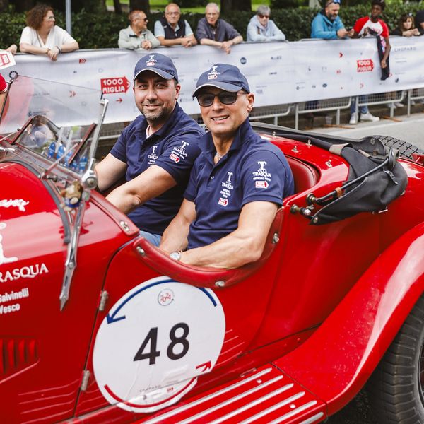 Andrea Vesco e Fabio Salvinelli a bordo di una Alfa Romeo 6C 1750 Ss Spider Z del 1929