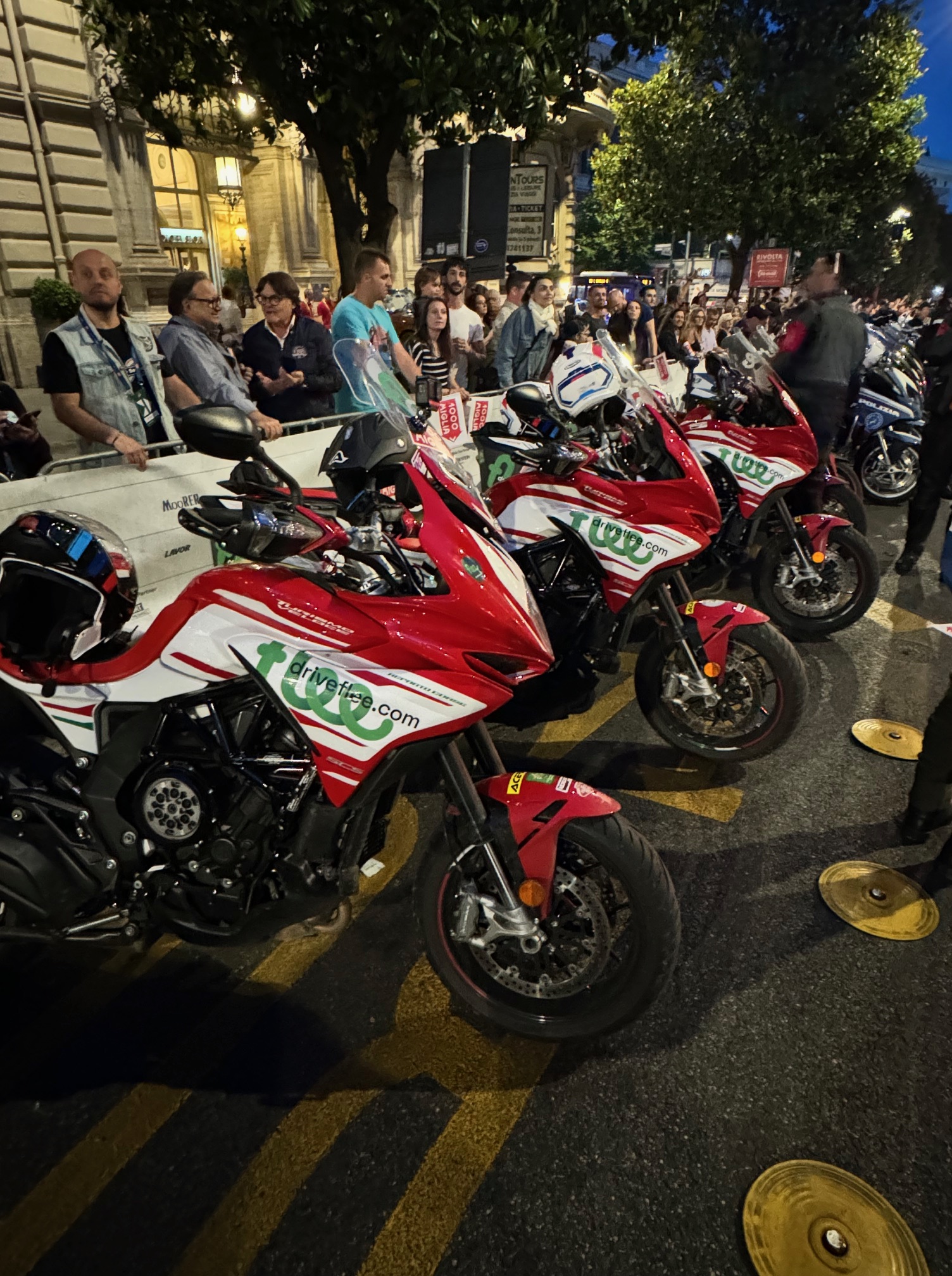 Un doveroso grazie Moov- DriveFlee a MV Agusta che ha messo a disposizione le moto Turismo Veloce, Caberg per i caschi con Midland per interfono e Acerbis per le tutte antipioggia davvero provvidenziali sin dalla partenza. Grazie anche a Insta 360 per averci dato le videocamere a bordo delle nostre moto.