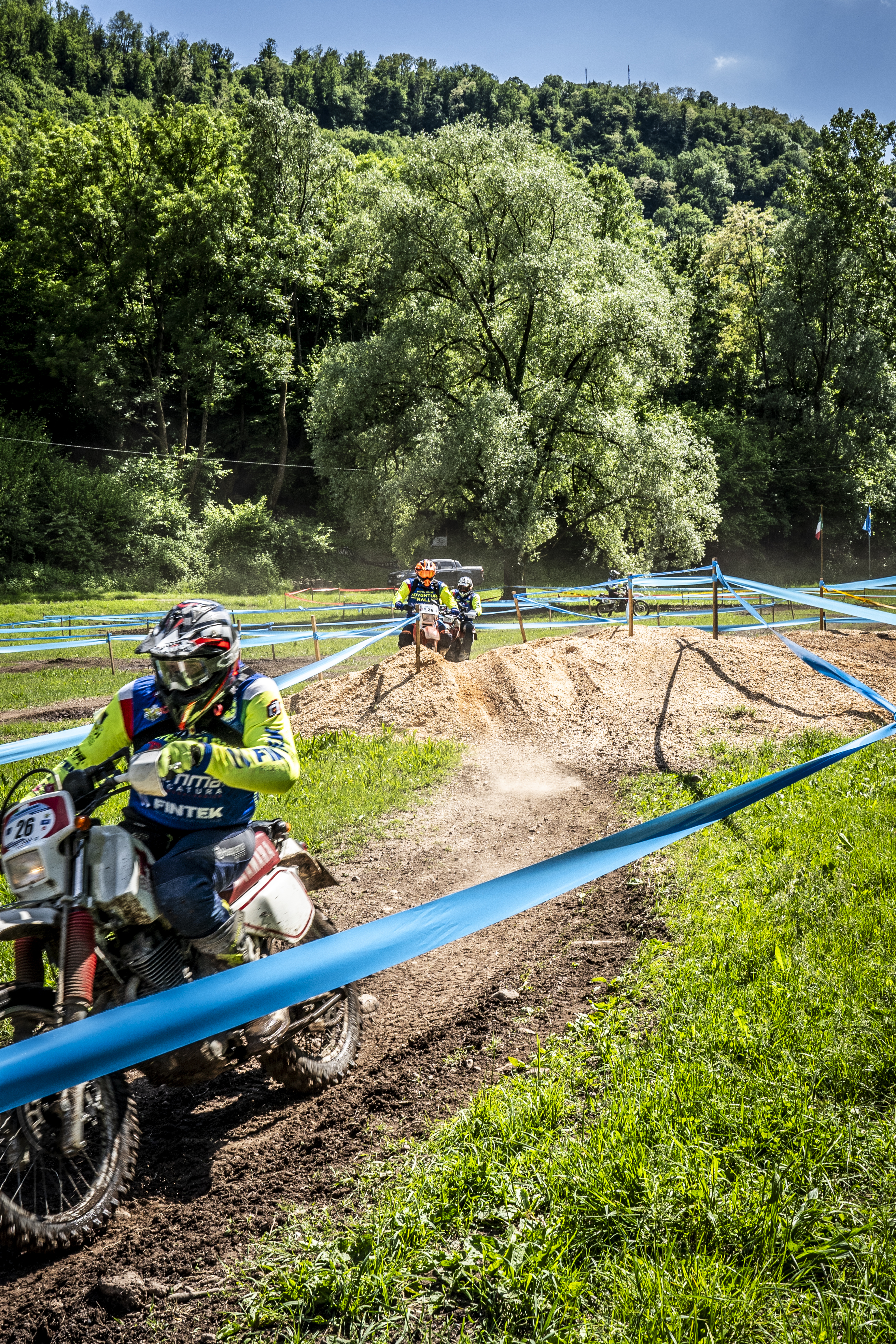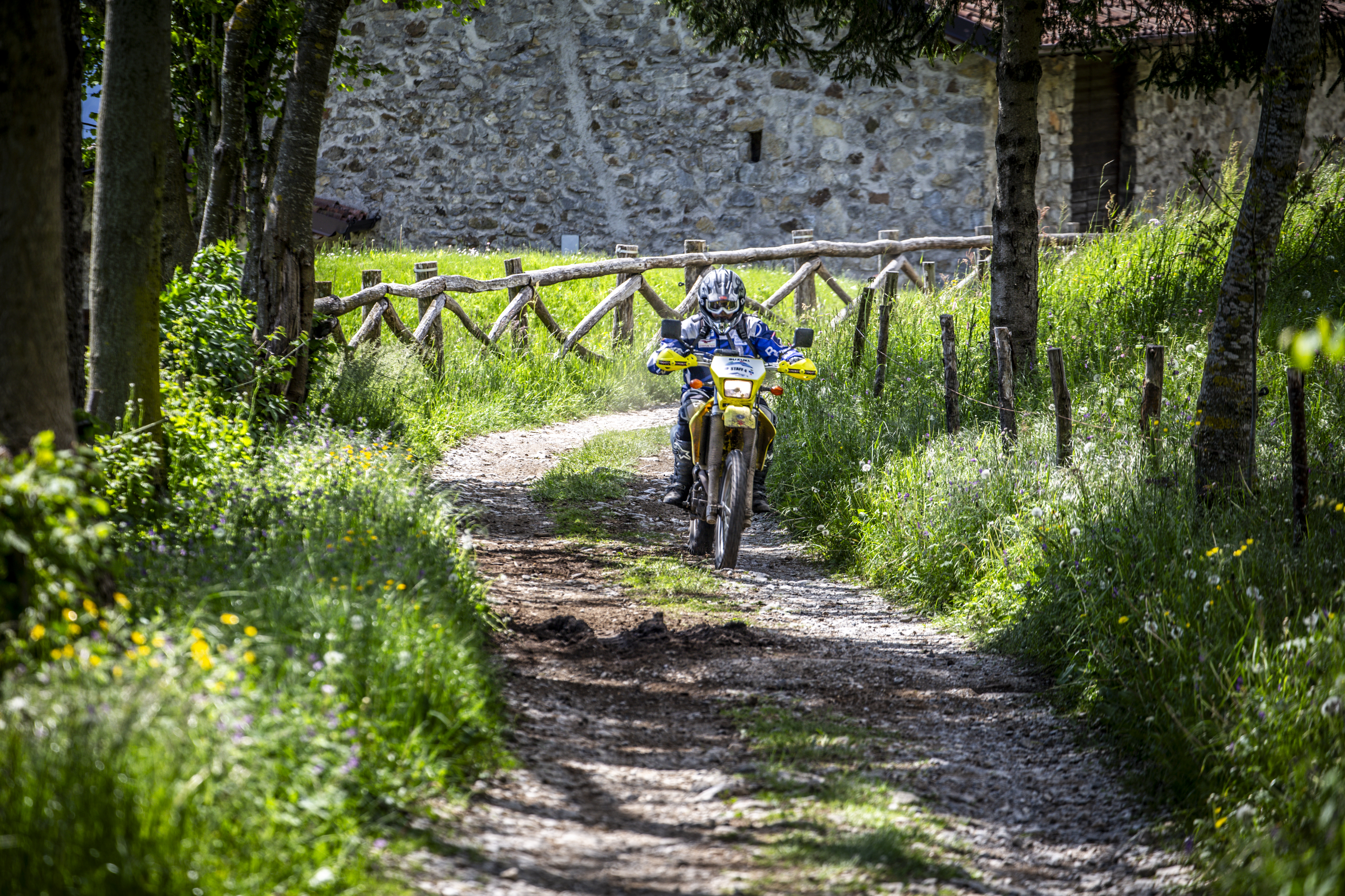 Da li, percorrendo alcune strade di montagna per la maggior parte cementate, si raggiungeva la località Vesalla, sita nella frazione di S.Giovanni nel comune di Polaveno. Percorrendo poi la SP10 che porta a Ponte Zanano, si imboccava successivamente la SP345 fino al paese di Gardone Val Trompia dove si lasciava la strada principale per affrontare la salita verso i piani di Caregno con i suoi 1000 mt di altitudine. Nel piazzale dell’ albergo trattoria La Fabbrica, è stato allestito un controllo di passaggio (C.T) di tutti i partecipanti. Da li, i piloti si spostavano attraverso strade bianche scorrevoli e poco impegnative a Forcellino di Pezzoro con le sue strade ciottolate che l’anno prima avevano mietuto vittime (solo le povere moto per fortuna) con cadute e creando non poche difficoltà ai piloti meno esperti di fuoristrada.