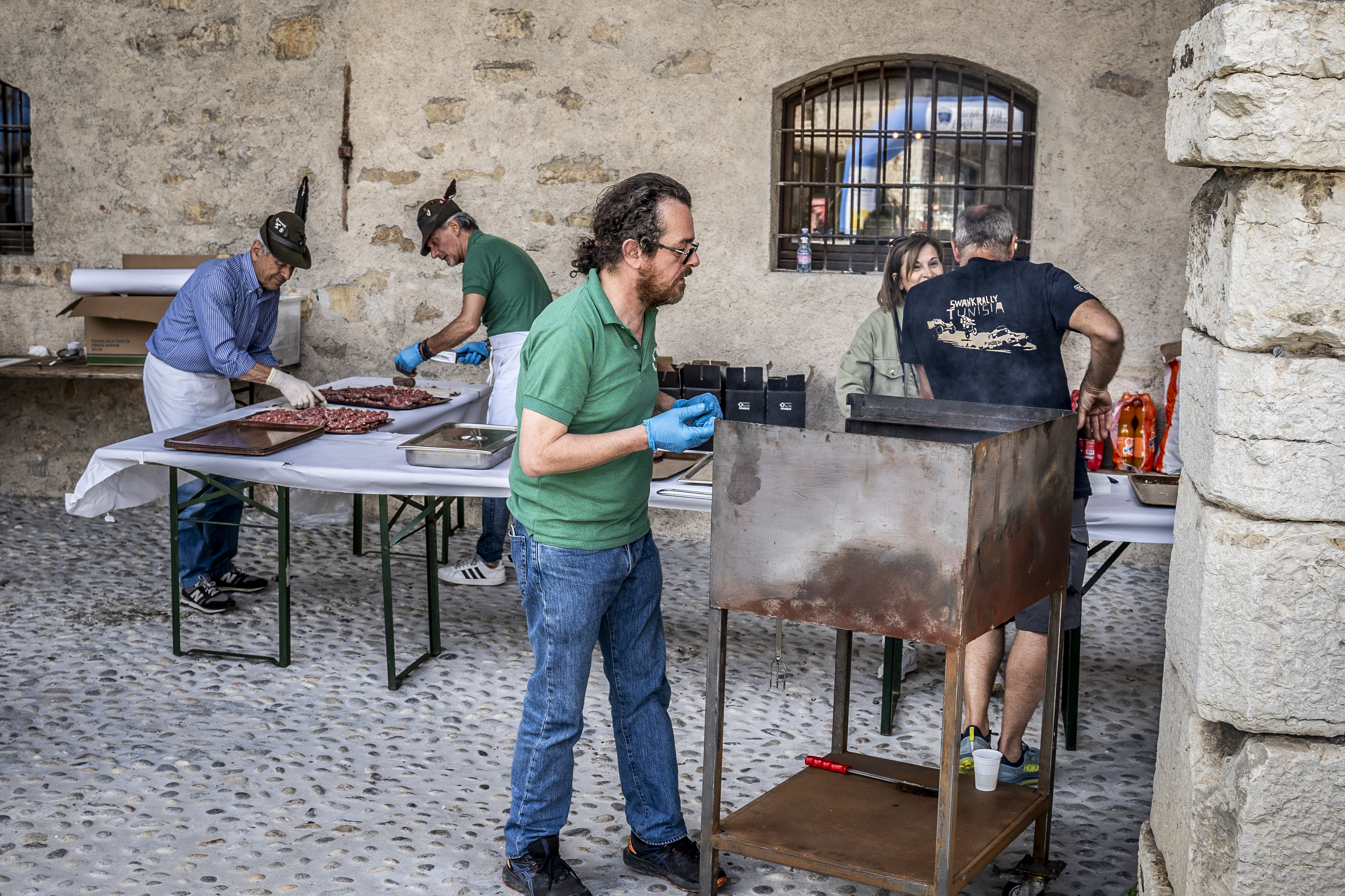 Dopo ben 7 ore in sella si torna, attraverso la mitica cava, nella prestigiosa sede della 1000 miglia dove termina la nostra avventura AUDAX 2024 e ci accolgono gli Alpini con pane e salamella e del buon vino.