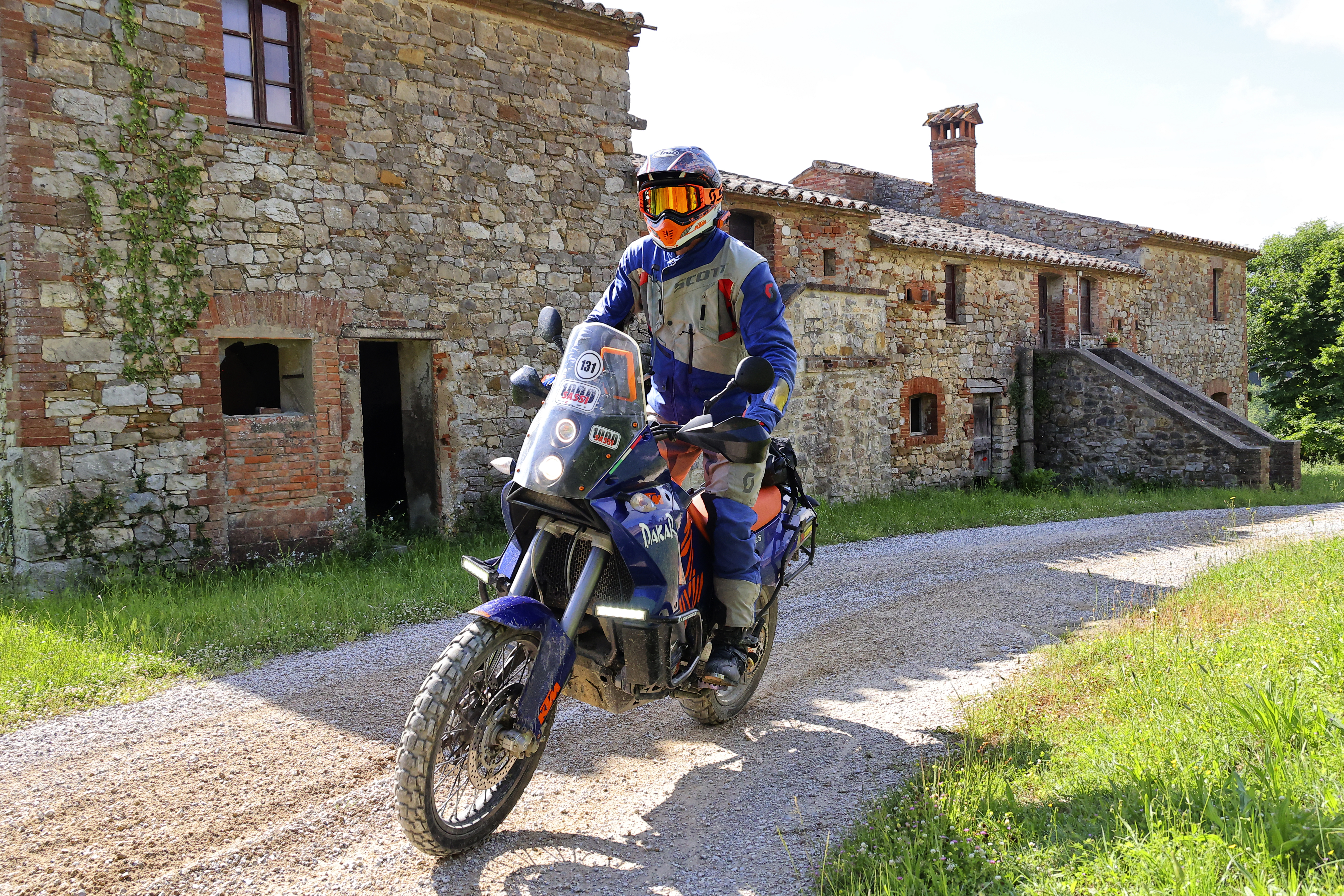 Daniele Alessandrini, ideatore e promoter della 1000 Sassi (e non solo) come sempre ha pensato a tutto per garantire oltre al divertimento anche la sicurezza, quindi non solo cura dei percorsi e ottima qualità dei pit-stop e dei pranzi lungo il percorso, ma anche un importante dispiegamento di uomini e mezzi specializzati per il recupero dei veicoli in caso di inconvenienti tecnici e per il soccorso dei piloti in caso di scivolate o cadute, con mezzi fuoristrada e autoambulanze 4×4, nell’ottica di non lasciare nessuno da solo in caso di guasti o peggio di infortuni. Inoltre, le posizioni in tempo reale di tutti i partecipanti sono state monitorate con l’App Whip Live, obbligatoria da installare che è utile anche per leggere le tracce GPX fornite in anticipo dall’organizzazione e molto ben inseribili nei propri nav e per i più incerti c’è stata perfino la possibilità di utilizzare il Tripy, un navigatore satellitare e road book elettronico con traccia già caricata, messo a disposizione dall’organizzazione.