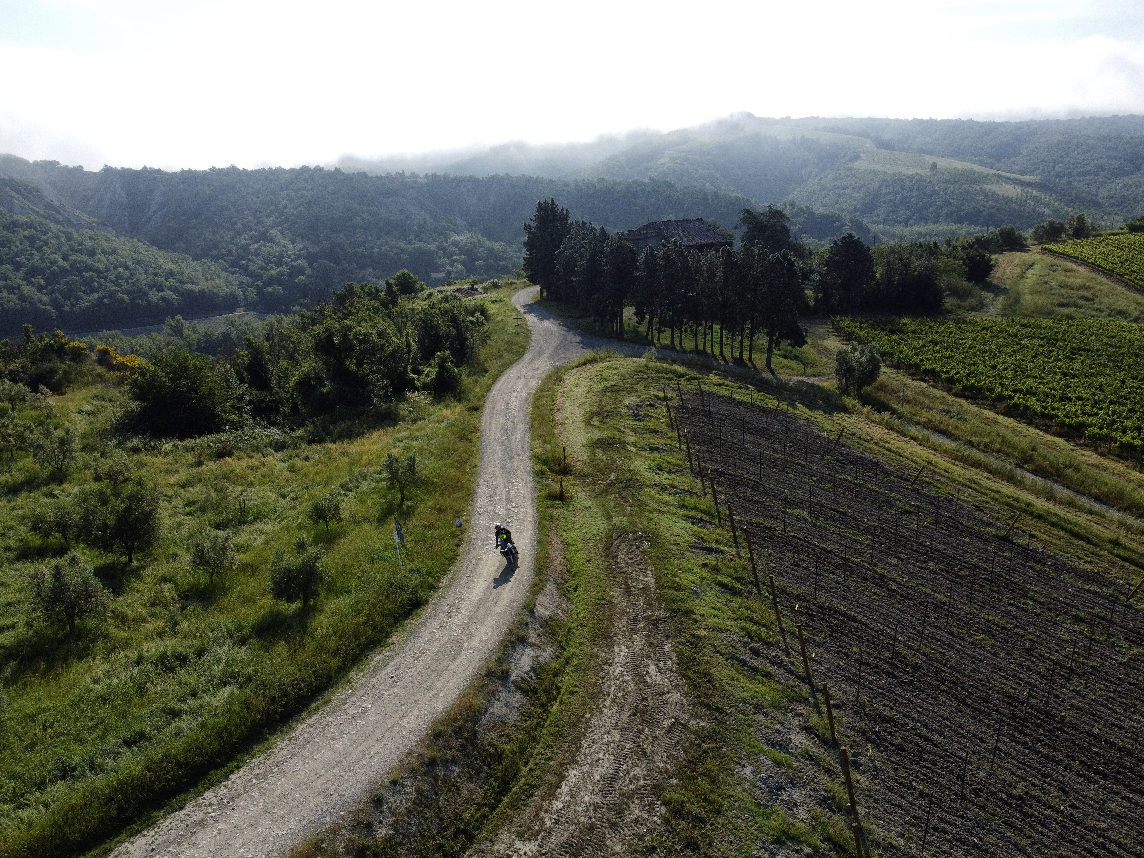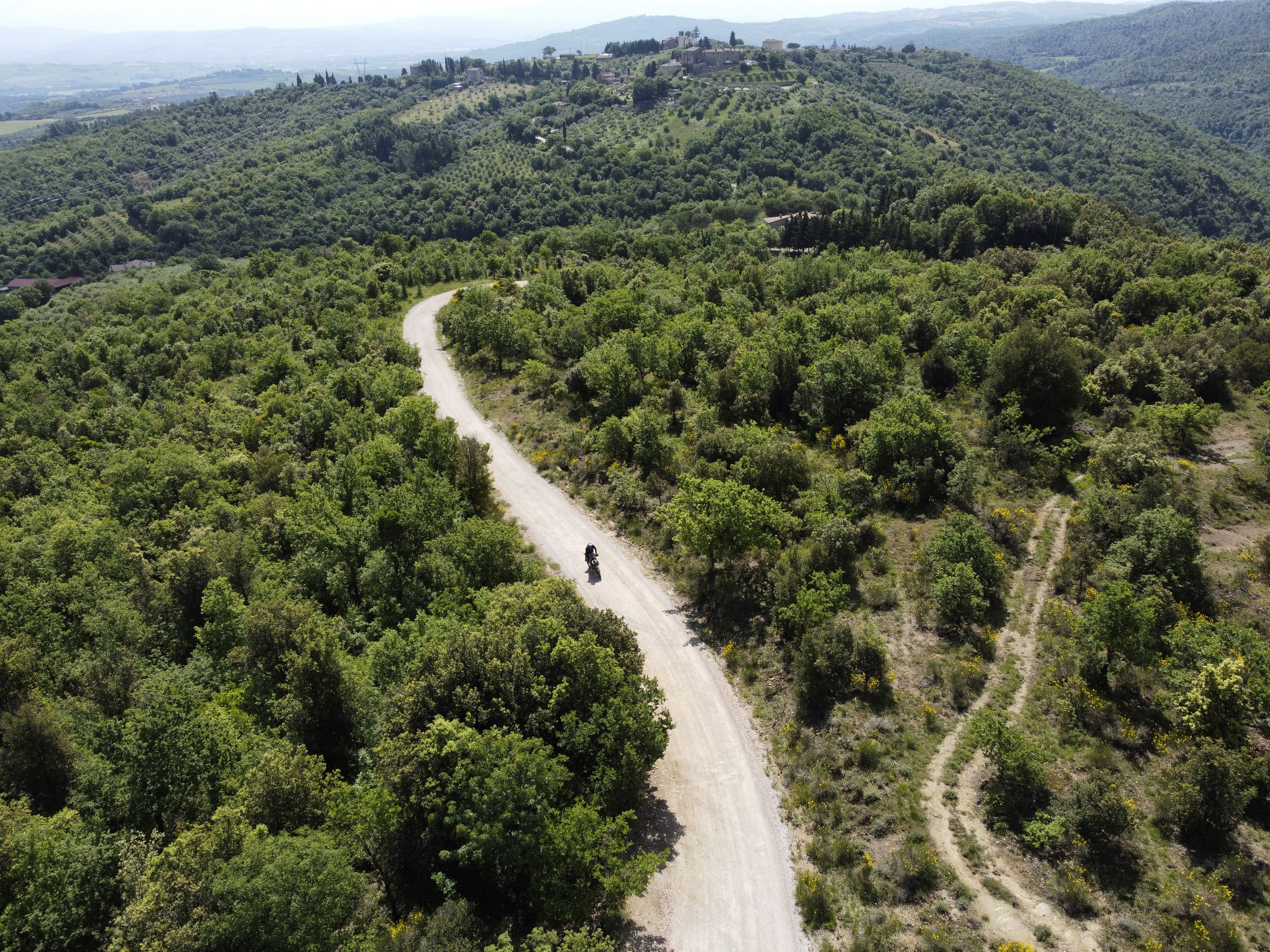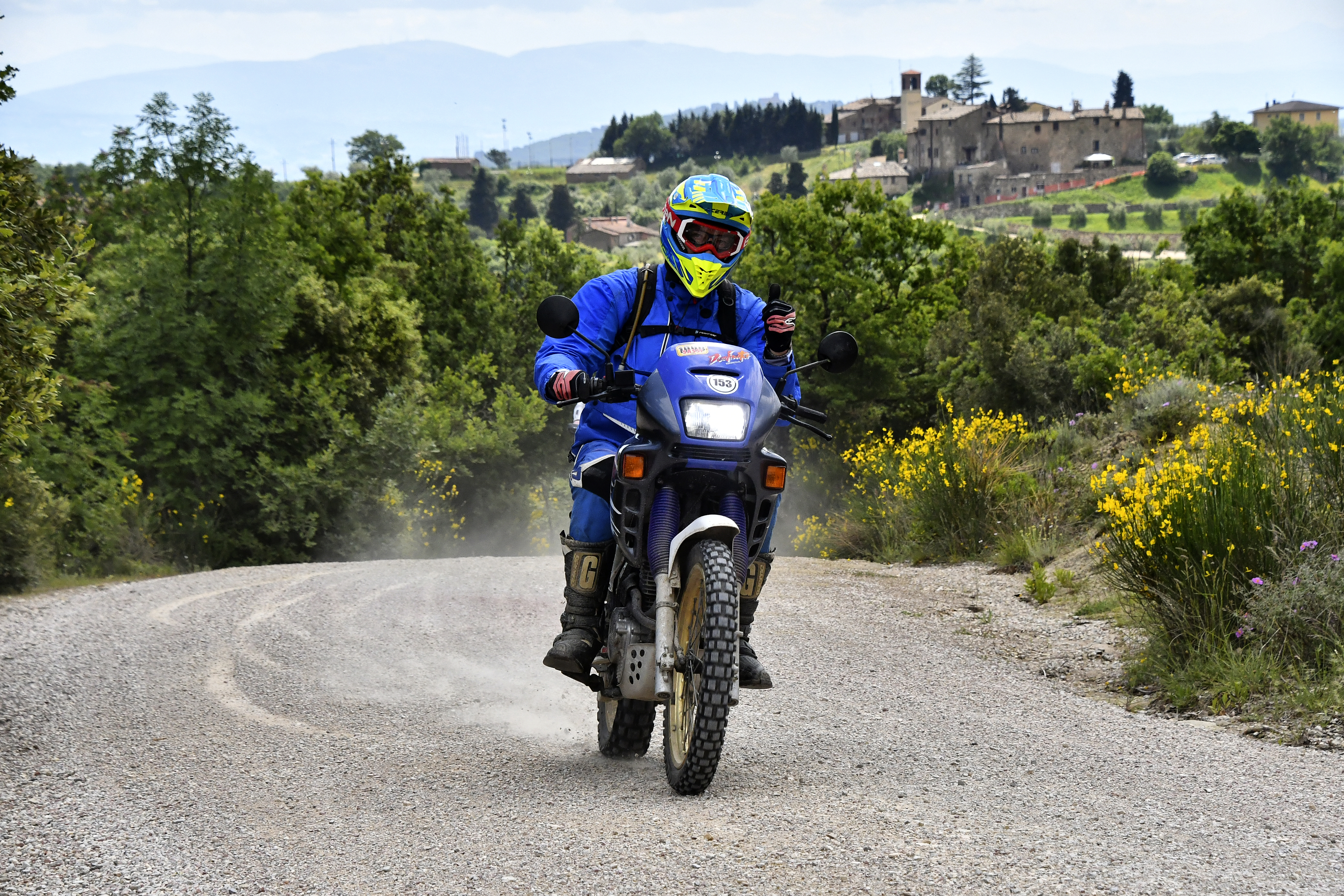 Dopo pranzo iniziano alcuni tratti più piccanti ma nulla d’impossibile, pietre smosse e belle salitone da fare a manetta, salita che si affaccia alla vista dalla cità di Panicale sul Lago Trasimeno. Si alterna asfalto ed off road leggero fino alla fine della tappa, poco asfalto e veramente divertente.