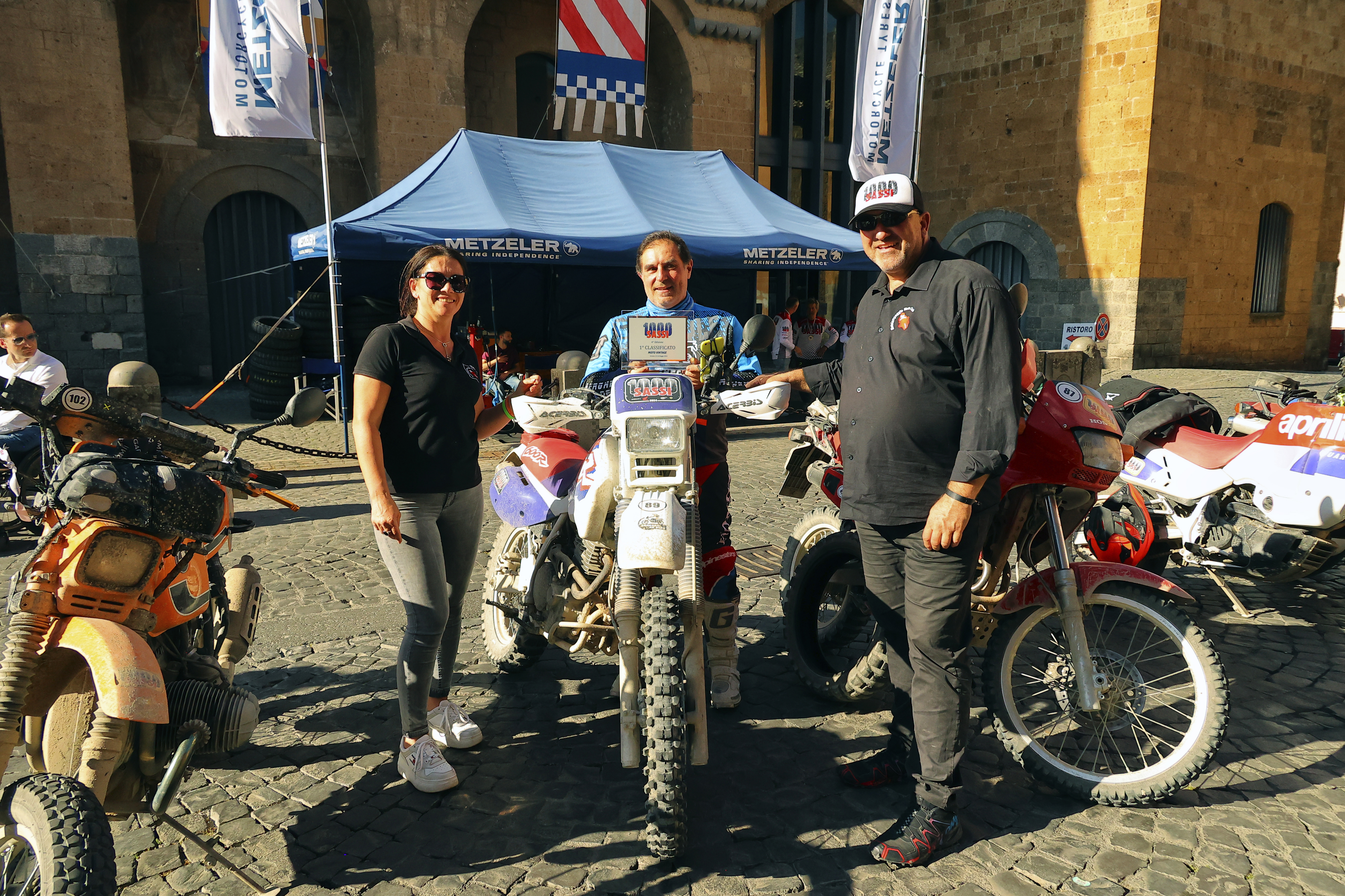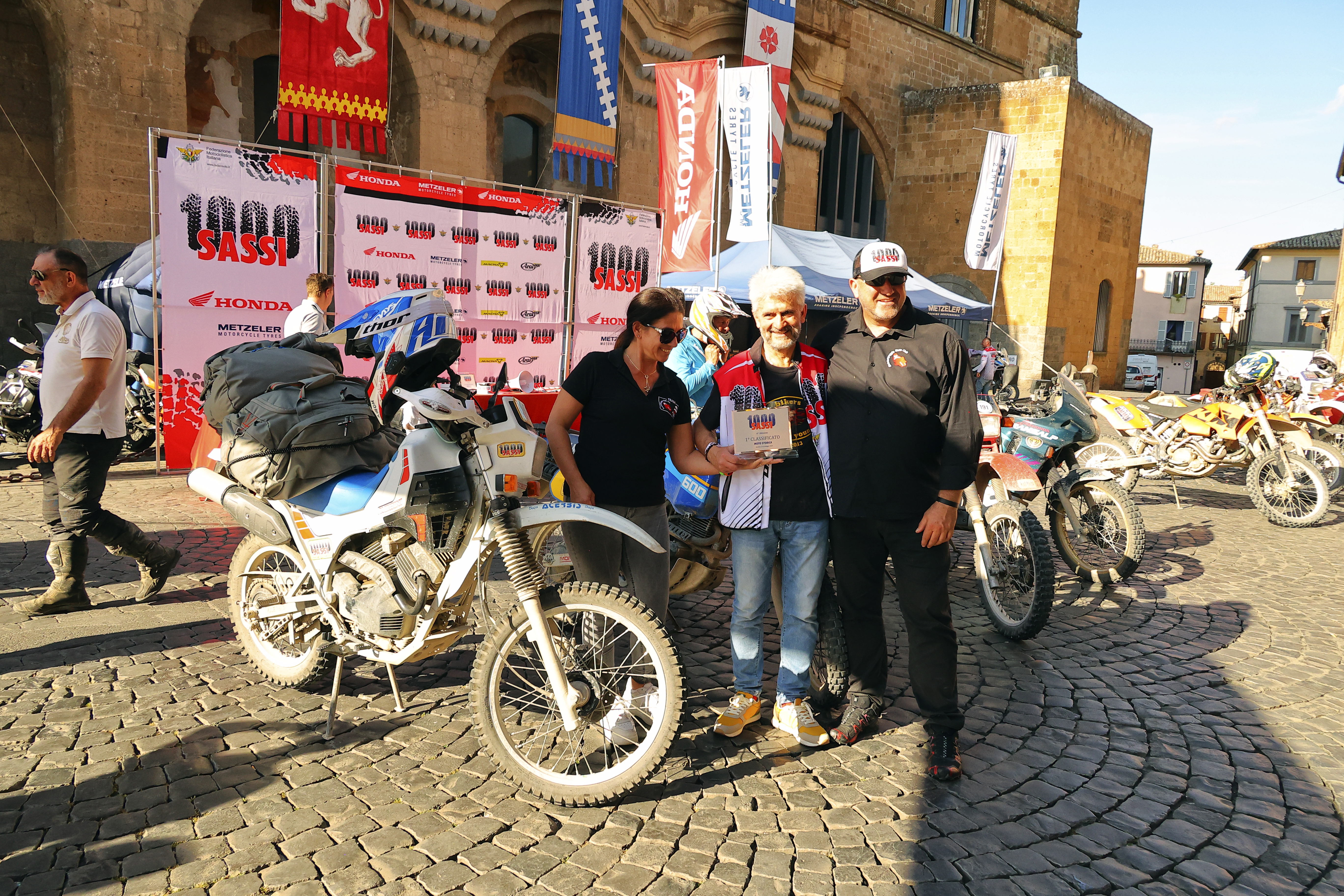 Partner della 1000 Sassi 2023 sono stati la Honda, che ha rinnovato la partnership, mettendo a disposizione numerose moto per lo staff, ospiti e giornalisti, Metzeler e Arai, rappresentata da Maurizio Bombarda (in moto) e dai figli Giacomo e Francesco e presente anche con il van vetrina-hospitality del marchio NOS. La manifestazione ha ricevuto il riconoscimento del Comune di Orvieto e del Comune di Vitorchiano. Presenti, in rappresentanza degli organi di informazione specializzati, gli inviati delle testate più prestigiose di settore come Motociclismo, Due Ruote, InMoto, Donne in Sella, Roadbook e naturalmente noi per Fuoristrada d’Epoca Magazine.