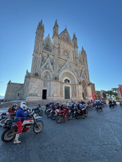 Domenica 26 maggio, la carovana aumenta ancora, bel 400 i piloti al via dalla splendida Piazza del Duomo di Orvieto invasa da turisti e da moto, cornice spettacolare ed occasione più unica che rara.
