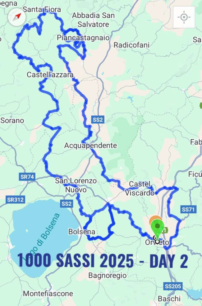 La traccia del sabato ha esteso il raggio anche in Toscana, oltre che in Umbria e Lazio, percorrendo le pendici del monte Amiata, e con la sorpresa verso fine tappa della vista sul lago di Bolsena.