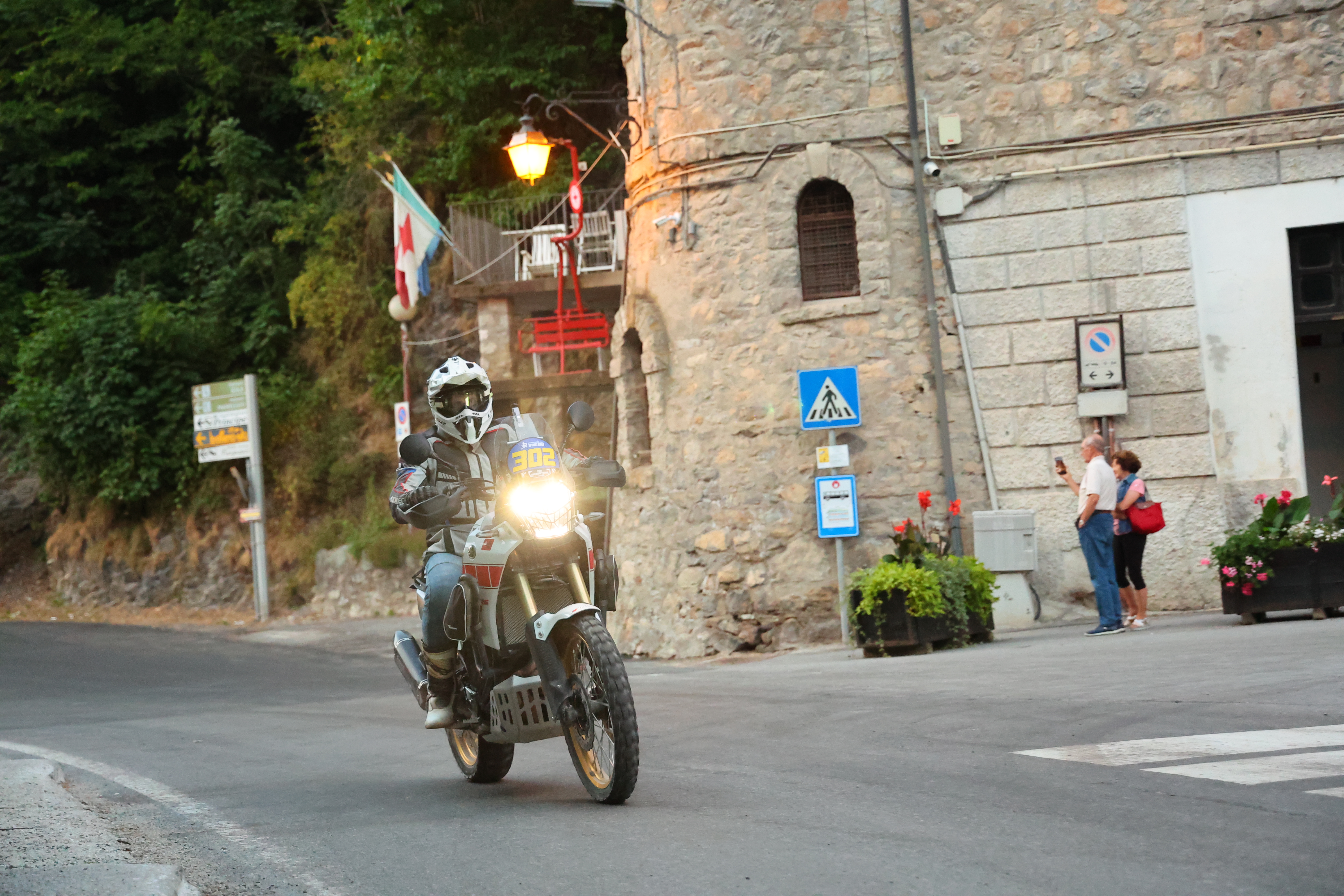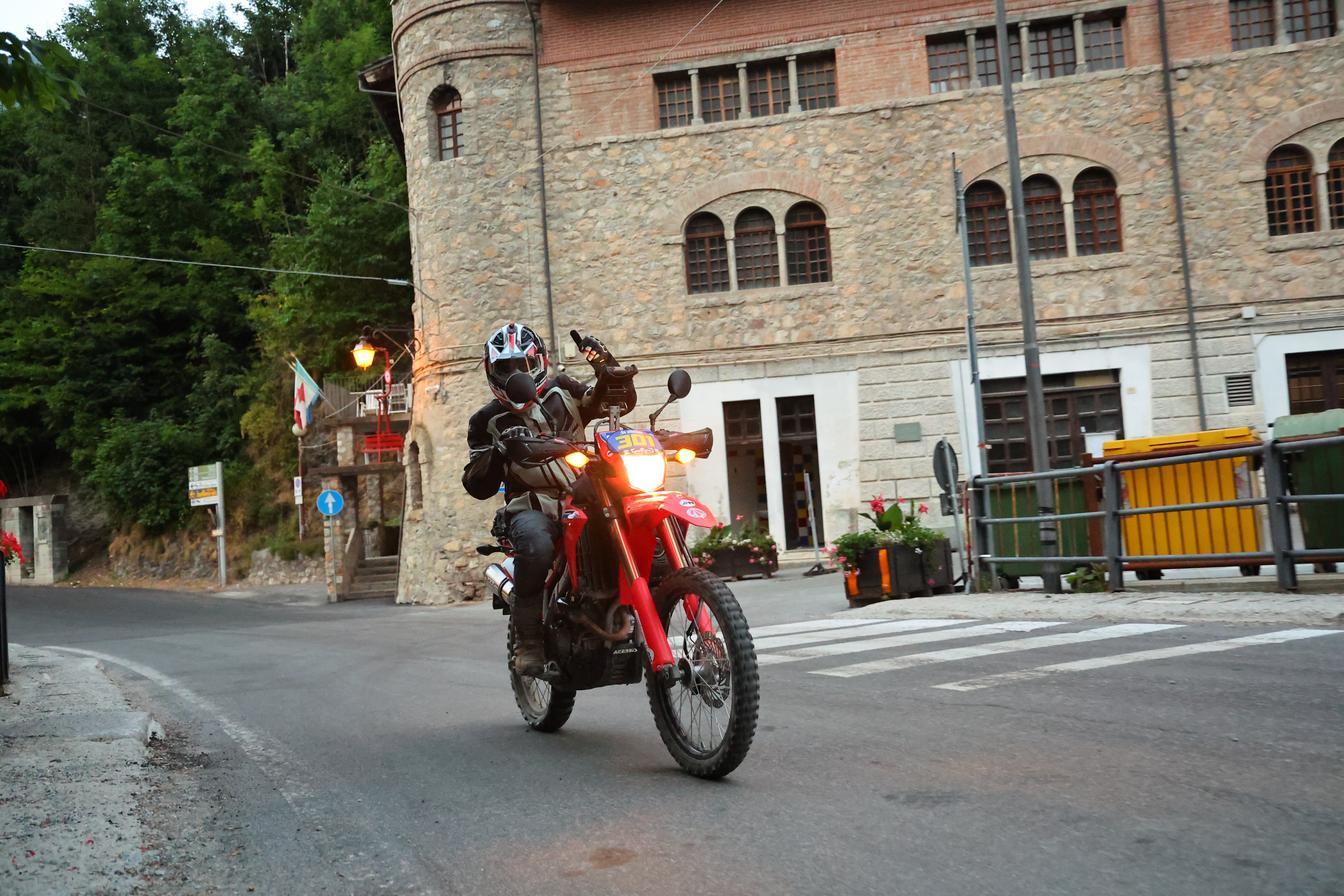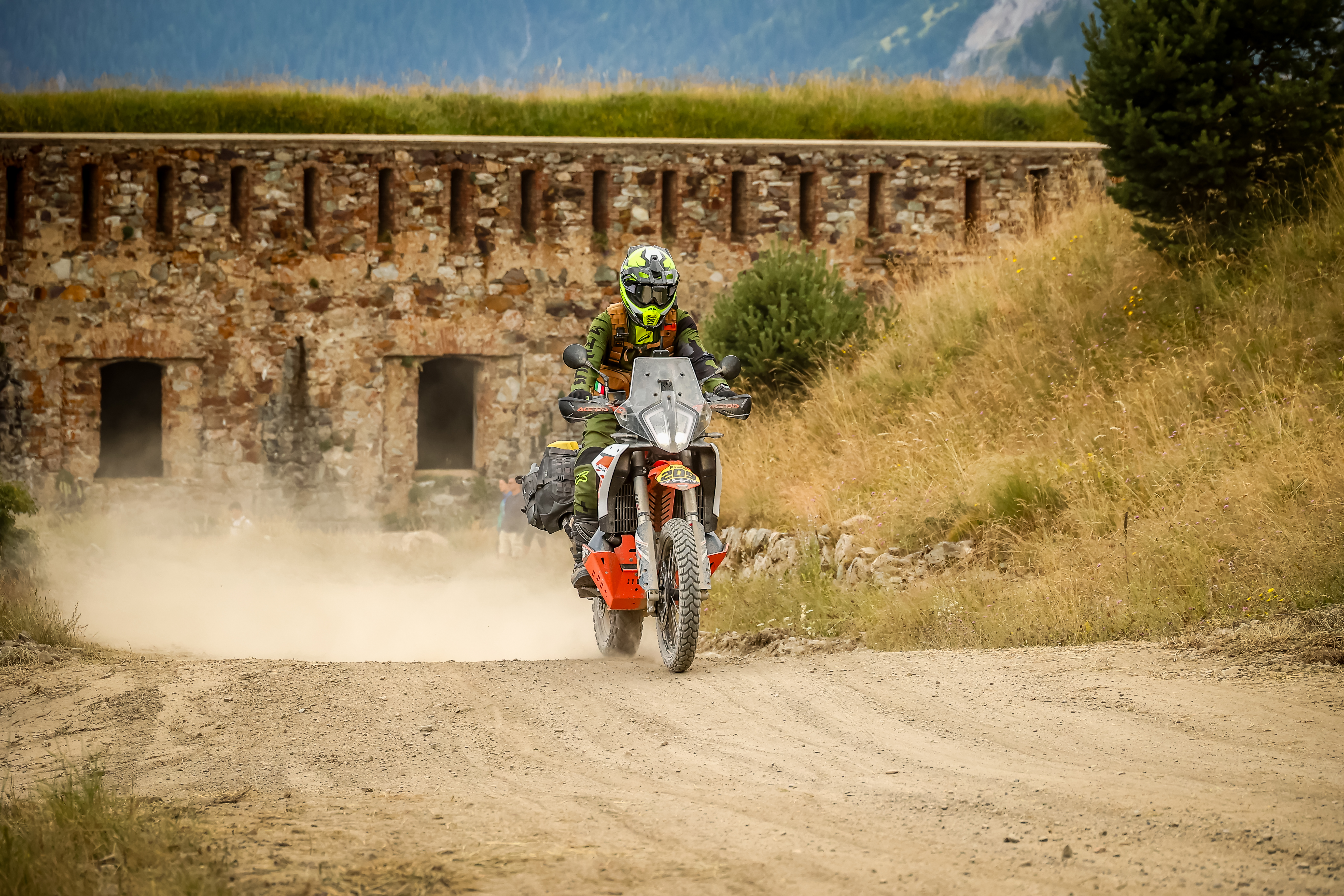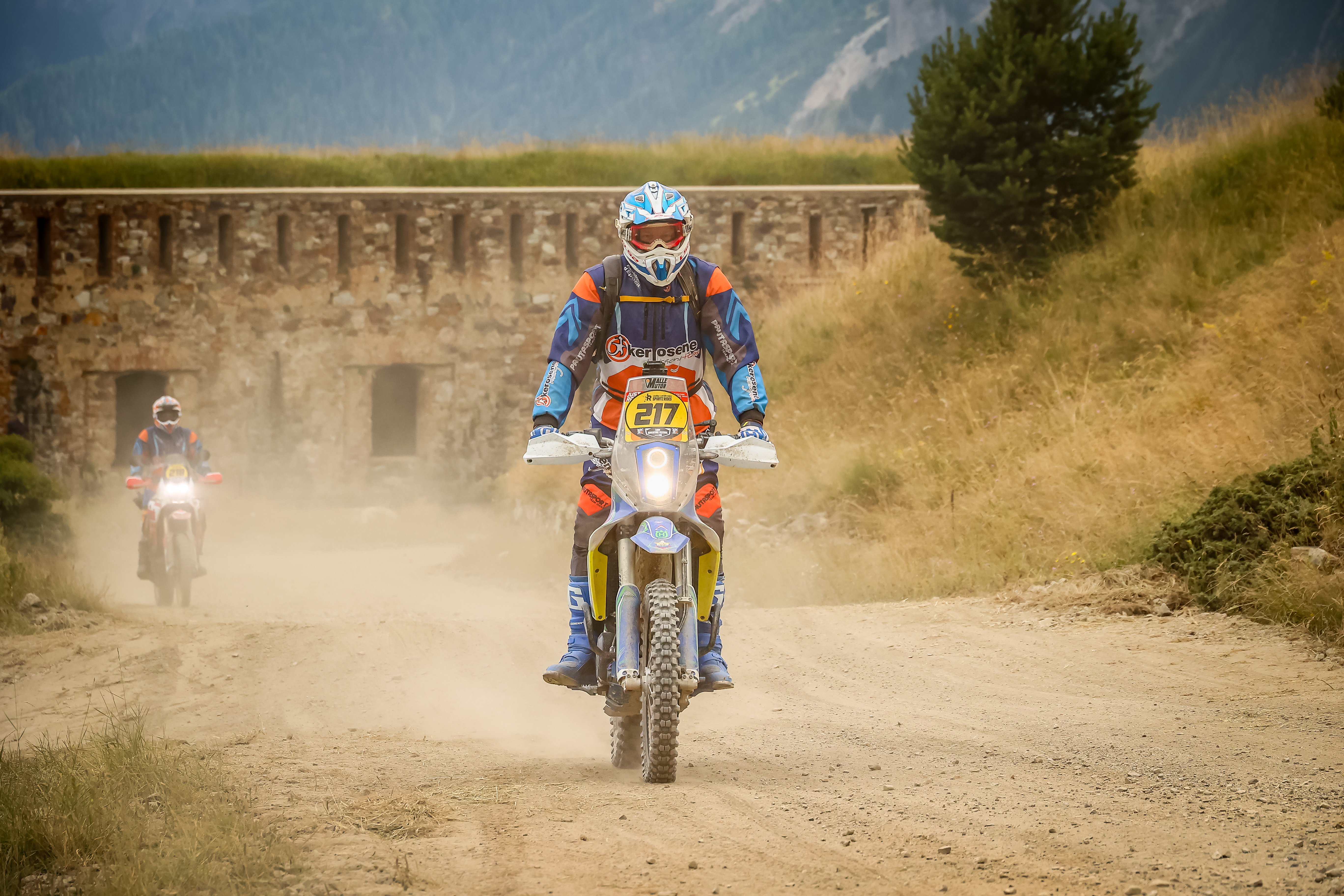 Sabato, partenza alle 07:30, tracce spettacolari sia per la Rally da 180 km che per la Legend da 230 Km. Non la solita Via del Sale, ma varianti cucite appositamente dallo staff per l’occasione. Da Limone Piemonte, sempre in quota , poco asfalto secondario e tanti tanti sassi, polvere e gloria. Vecchie strade militari con la loro storia ed i ruderi delle fortificazioni, fino ad Ormea, poi giù verso Triora e bosco di Rezzo per poi sconfinare il Francia e risalire off road verso Col di Tenda. In lontanza si scorge nuovamente il Forte Centrale di fine tappa.