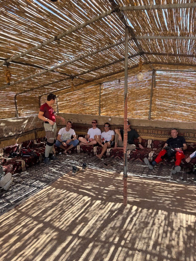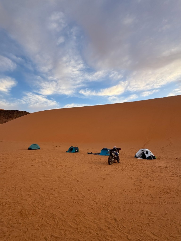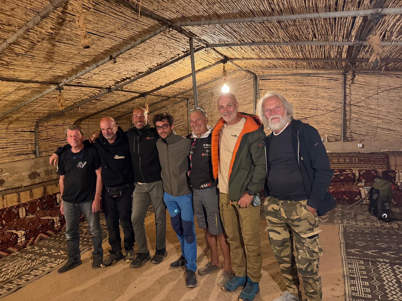 La magia esplode la sera. In cinque campi diversi, allestiti tra dune e vallate di roccia, il gruppo trova un’oasi di calore umano. Qui la sabbia diventa morbida, il cielo si accende di stelle e il silenzio si trasforma in poesia.