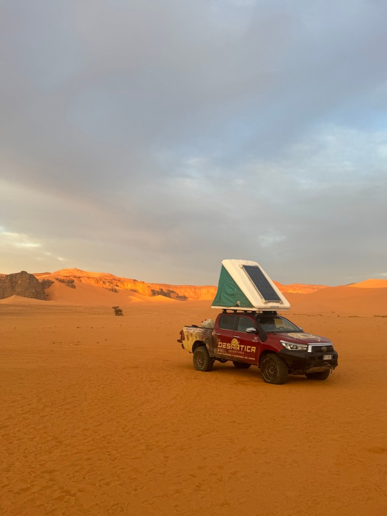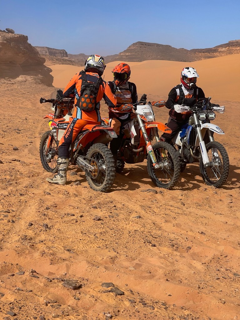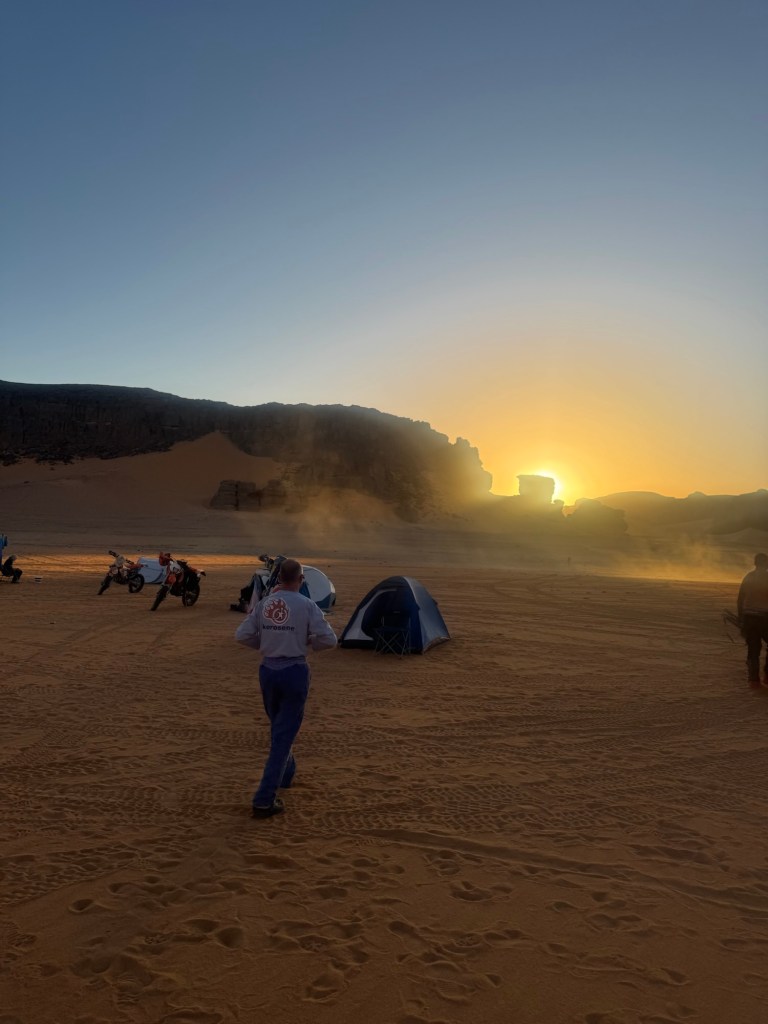 L’arrivo a Djanet, piccola oasi sospesa tra montagne nere e palmeti verdi, è già un’emozione. Qui comincia tutto: si preparano le moto, si stringono i caschi, e l’adrenalina sale. Dietro ogni emozione, però, c’è una struttura solida come la roccia del Tassili.