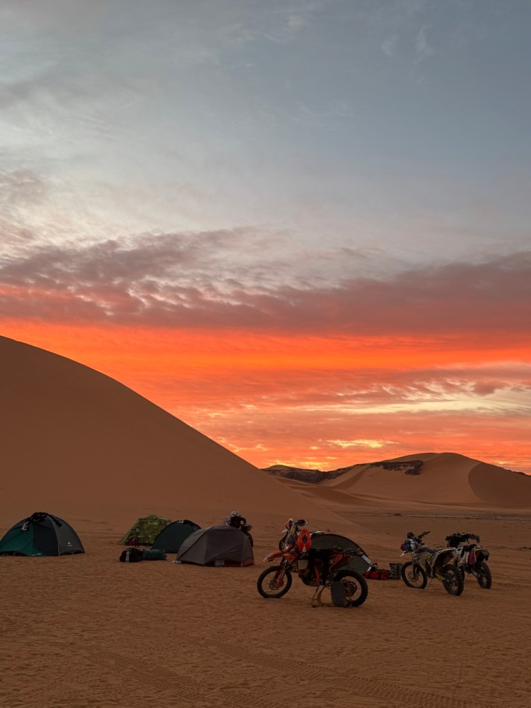 Le moto si lanciano sulle piste, attraversano canyon scolpiti dal vento, sfidano dune che sembrano voler toccare il cielo. La Tadrart avvolge con i suoi colori che mutano a ogni ora; il Tassili racconta leggende antiche incise nella pietra.
