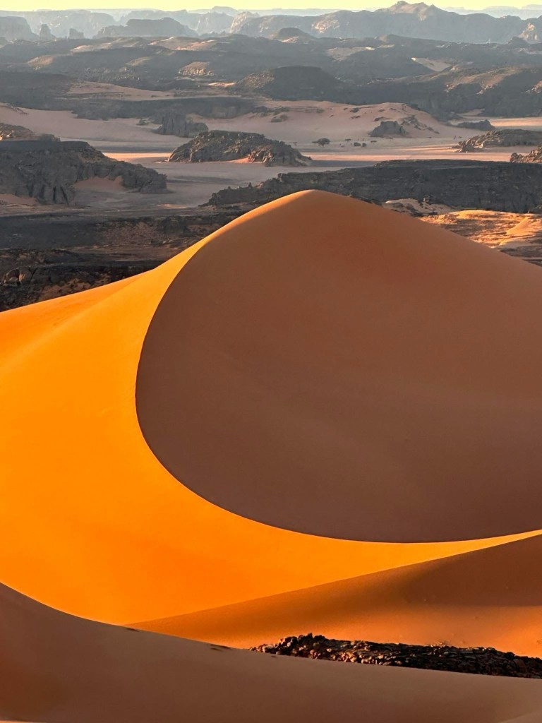 Colori diversi ma stesso spirito: Tadrart: a sud-est ci ha impressionato per le sue dune dorate, i canyon e gli archi di roccia naturali.