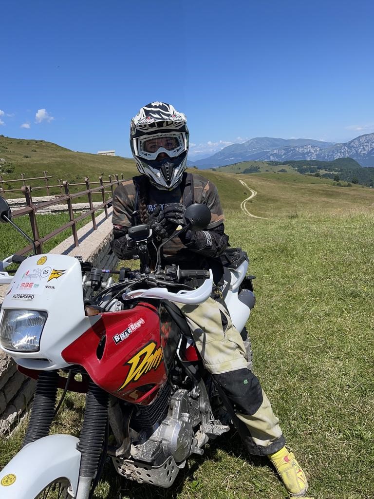 La navigazione scorre veloce per i primi 50 km dove tutto procede senza intoppi, le cose invece si sono fatte più complicate, specialmente per le grosse bicilindriche, solo nei tratti single track e nel fitto sottobosco, nulla di impossibile ma complice il gran caldo 33 gradi i piloti meno esperti hanno avuto qualche pensiero in più. Anche noi passiamo quasi indenni il sottobosco e la pietraia in salita che porta allo spettacolare paesaggio dei Monti Lessini.
